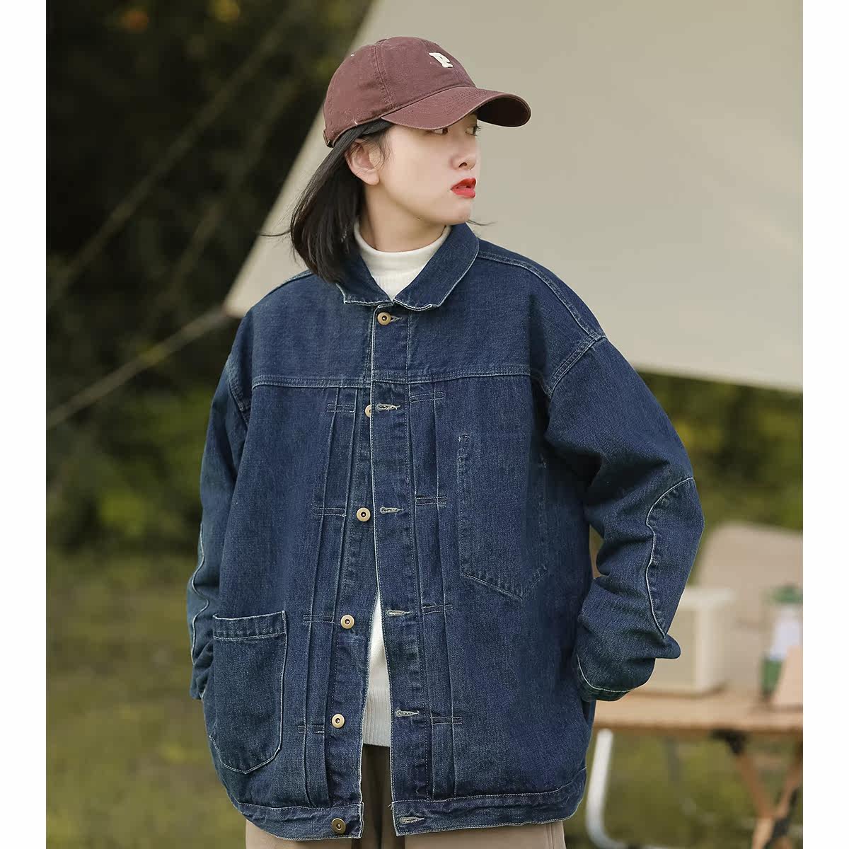 Denim jacket women's spring and autumn new Japanese retro student jacket Hong Kong style loose design sense tooling couple tops