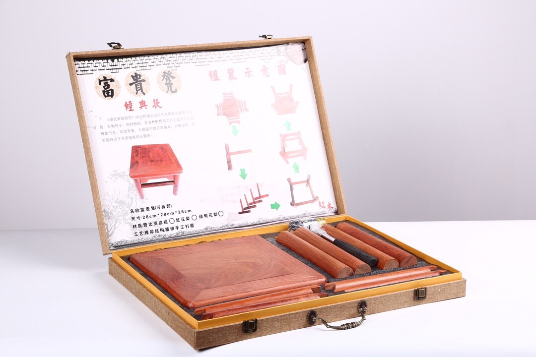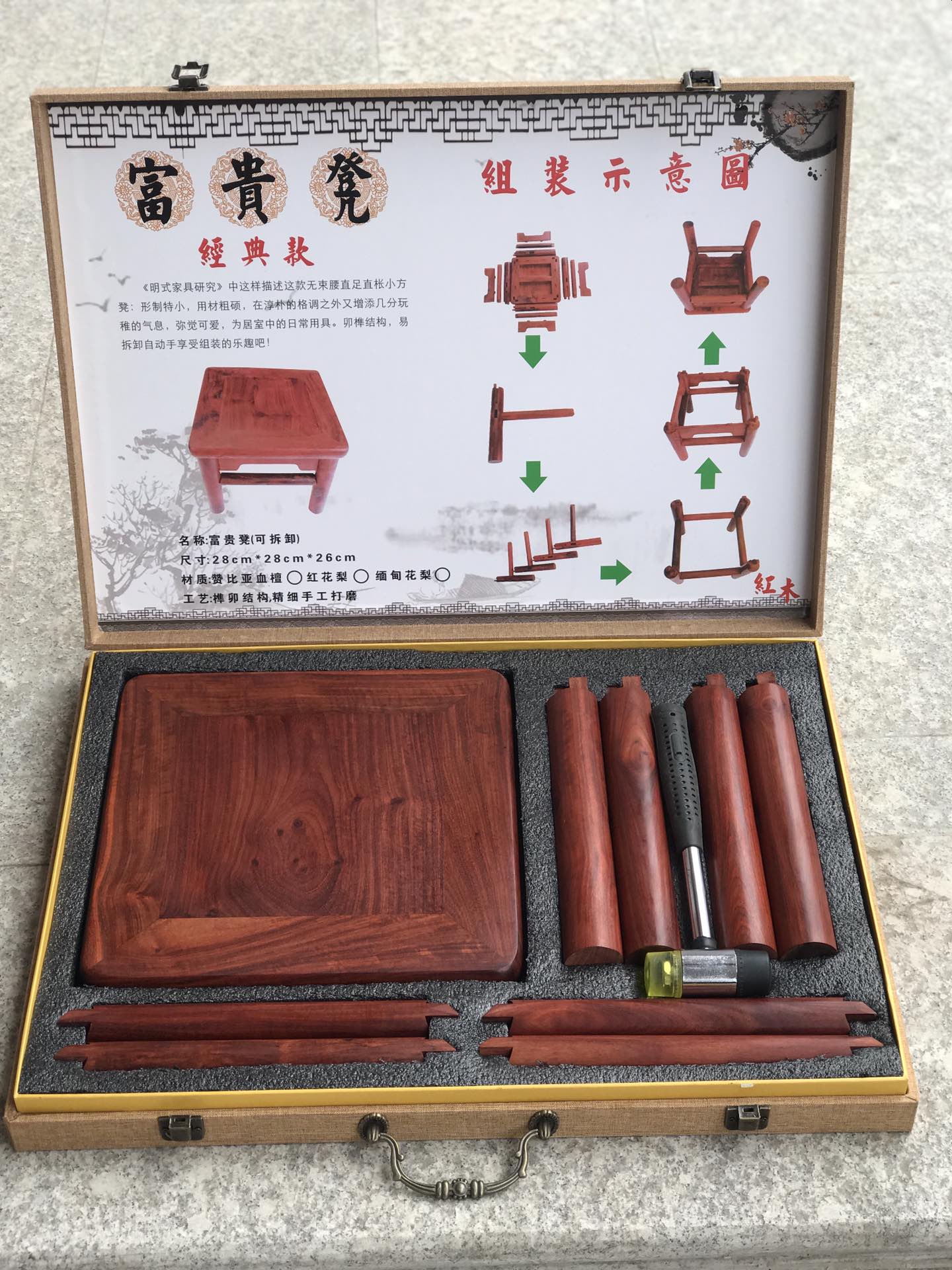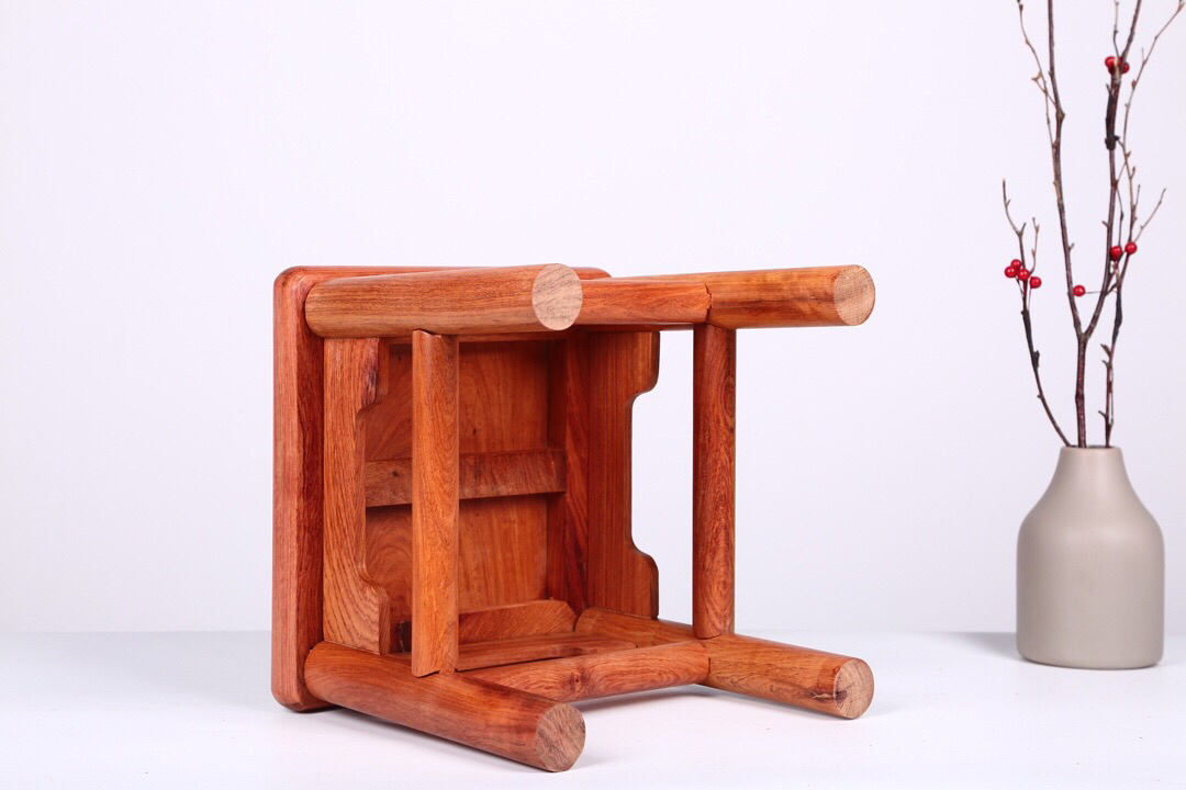 Small leaf red sandalwood rich stool detachable small square stool Burmese rosewood mahogany shoe changing stool log stool daily gift
