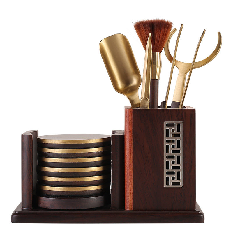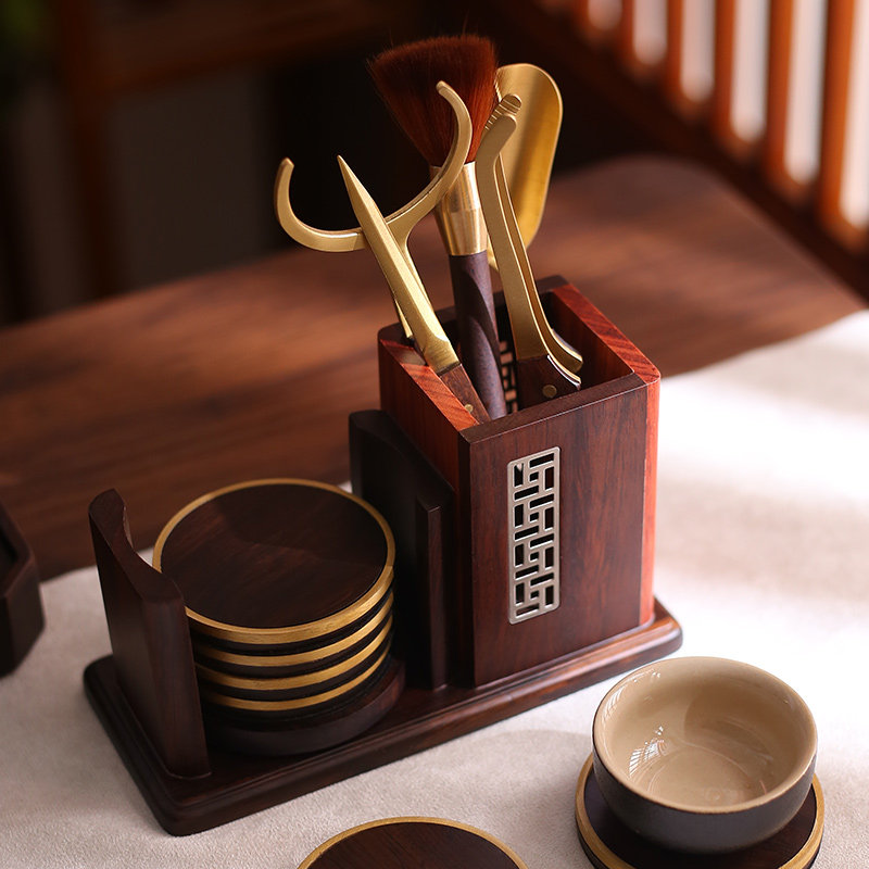 Copper Wood Strokes-Black sandalwood accessories Bronze Wood Vases-Black Sandalwood Accessories Copper Wood Vases-Black Sandalwood Accessories Book Window Cups Mat Six Gentlemen-Black Sandalwood Accessories Gold Silk Nana Cup Cushion Six Gentlemen-Black Sandalwood Accessories