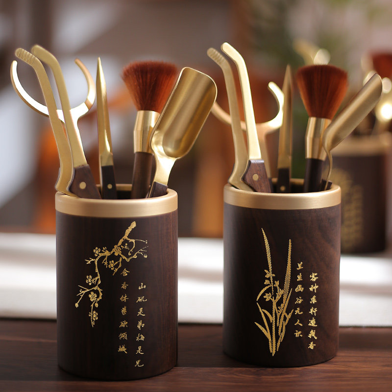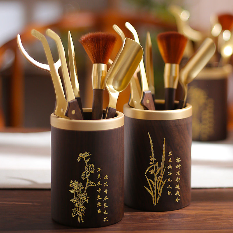 Pure Copper Black Sandalwood Kongfu Tea Accessories Suit Tea Spoon Raising Pot Pen Tea Lane 6 Six Gentlemen Tea Knife Tea Making Tool
