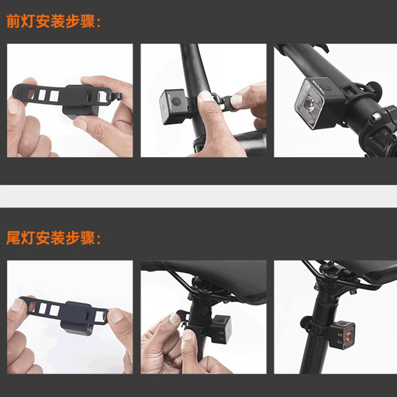 Bicycle lights front and rear high lumen smart brake tail lights USB charging waterproof night riding lights warning car headlights
