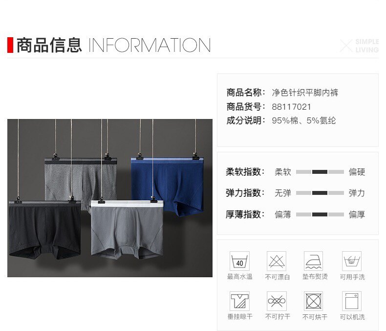 Baleno Mid-waist Solid Color Knitted Cotton Underwear Men's Boxer Breathable Comfortable Boxer Shorts