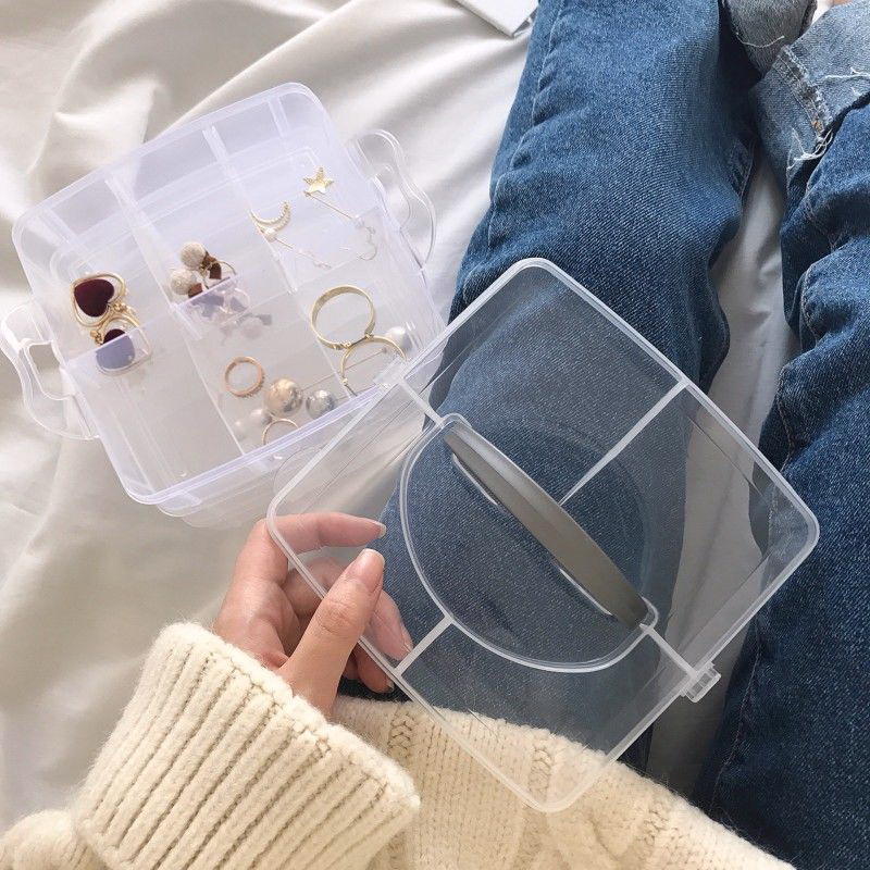 Minimalist Transparent Plaid Hand Containing Box Jewellery Earrings Necklace Ornaments Children Hair Accessories Practical Containing Box