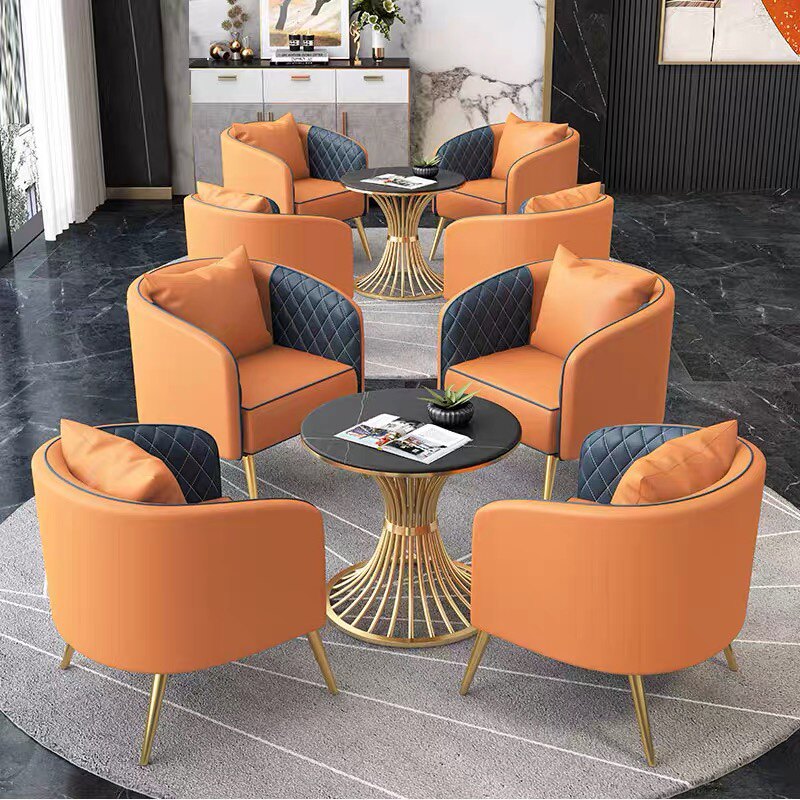 Single sofa orange single sofa khaki horn round tea table