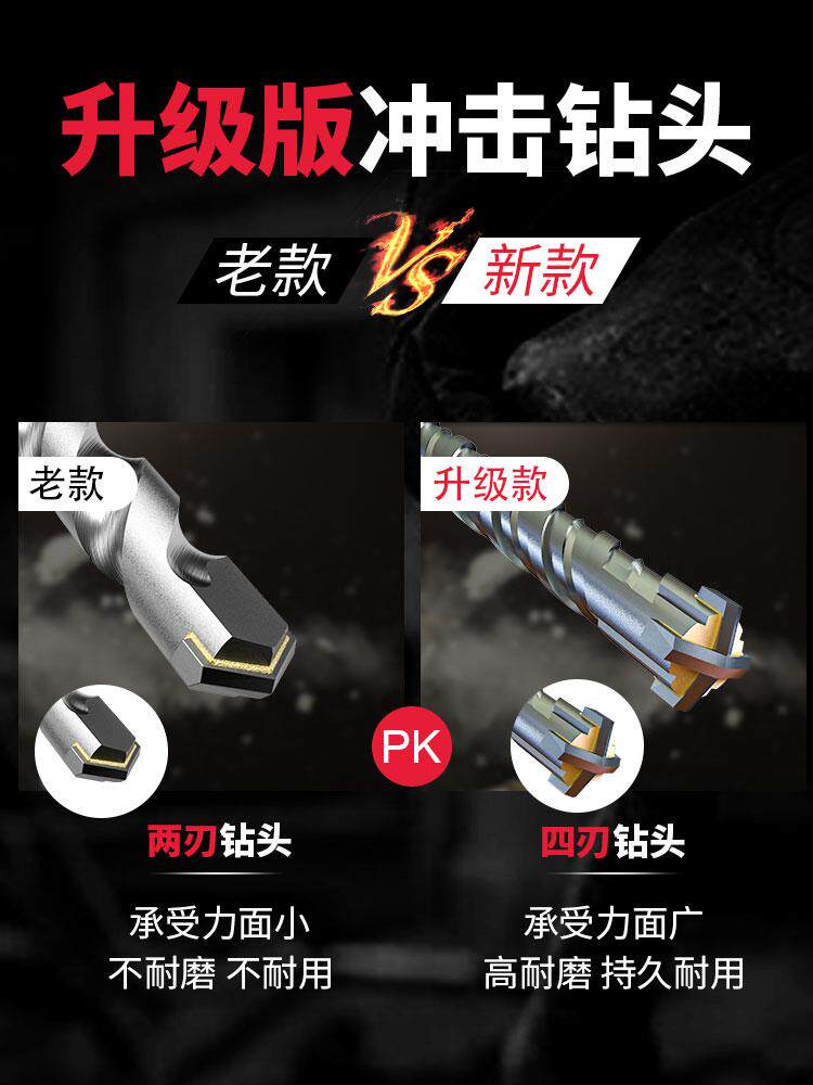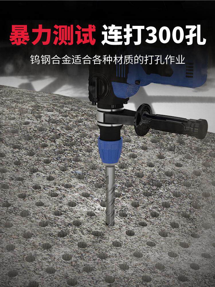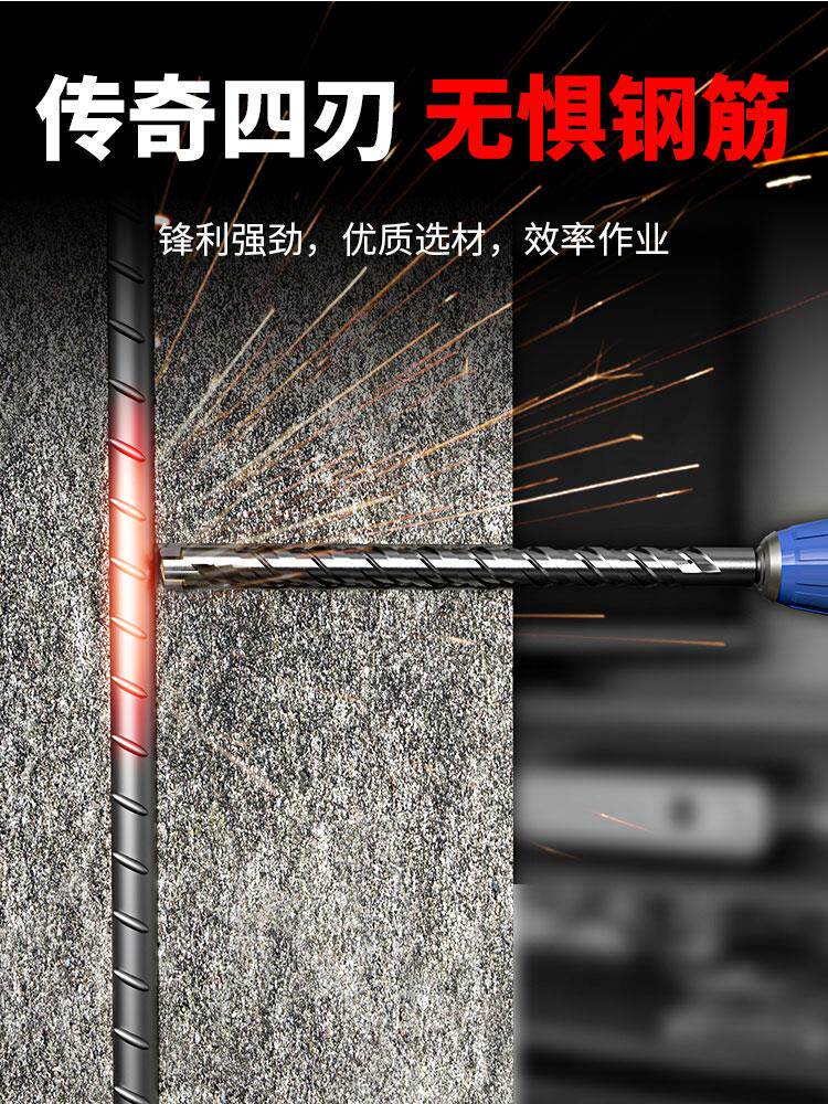 Cross-impact drill bit electric hammer drill concrete wearing wall square handle turning round handle Four-pit lengthened alloy four-blade perforated deity