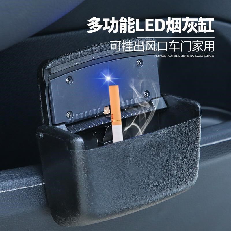 Car-borne Ashtray Door Side Adhesive Multifunction Creative Suspended Air Outlet Smoking Ash Tray With Light Nightlight Male