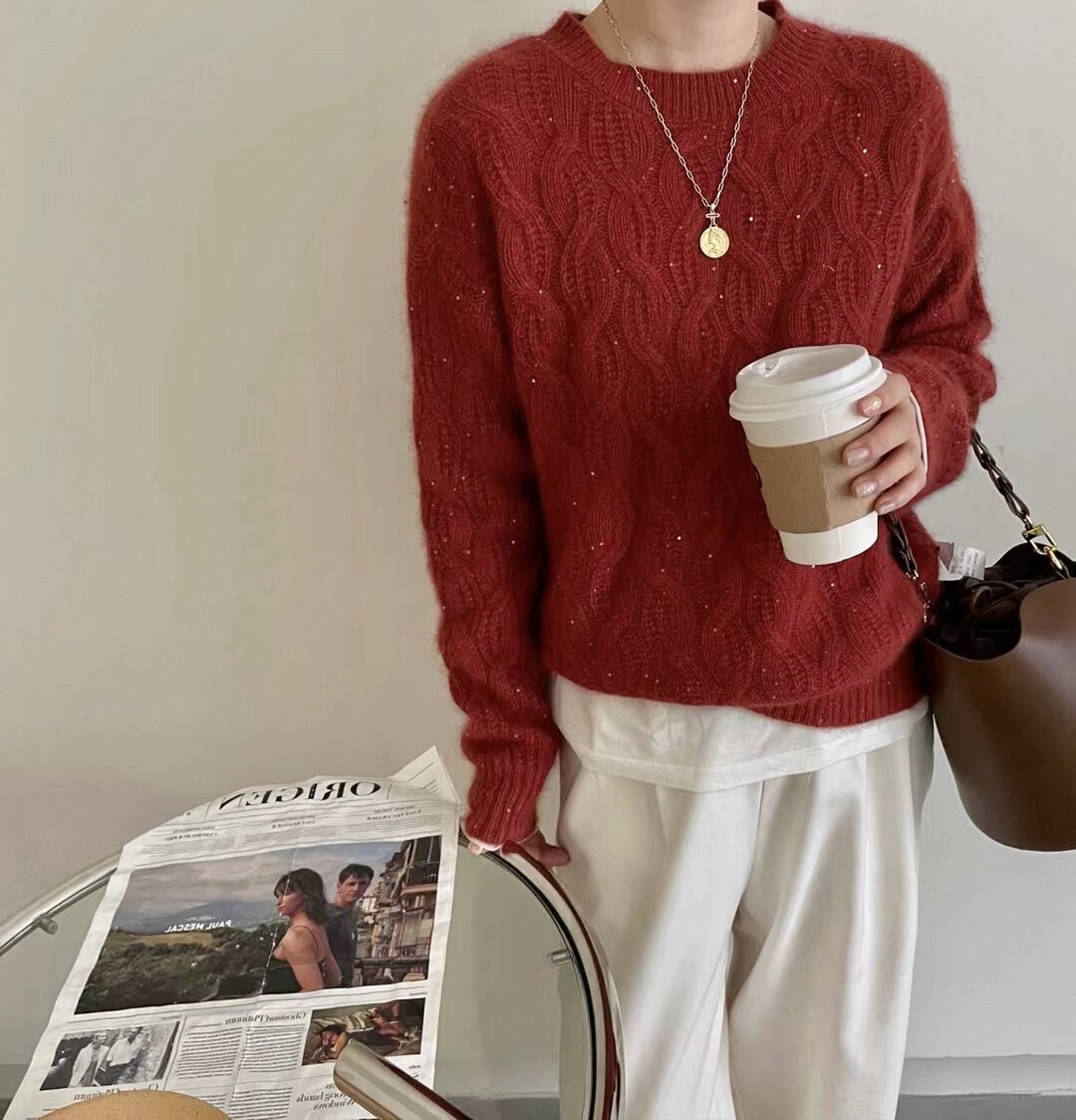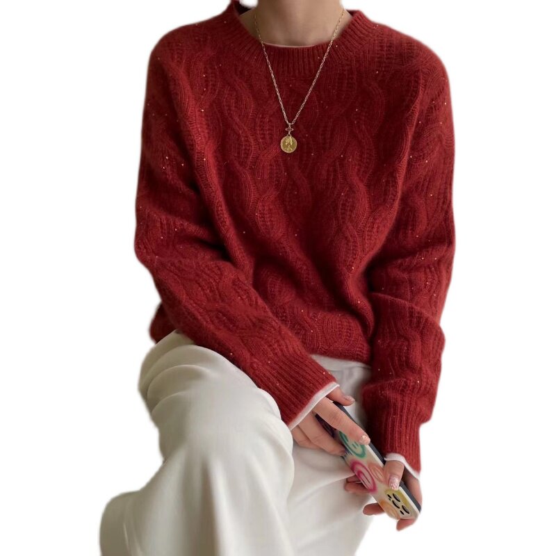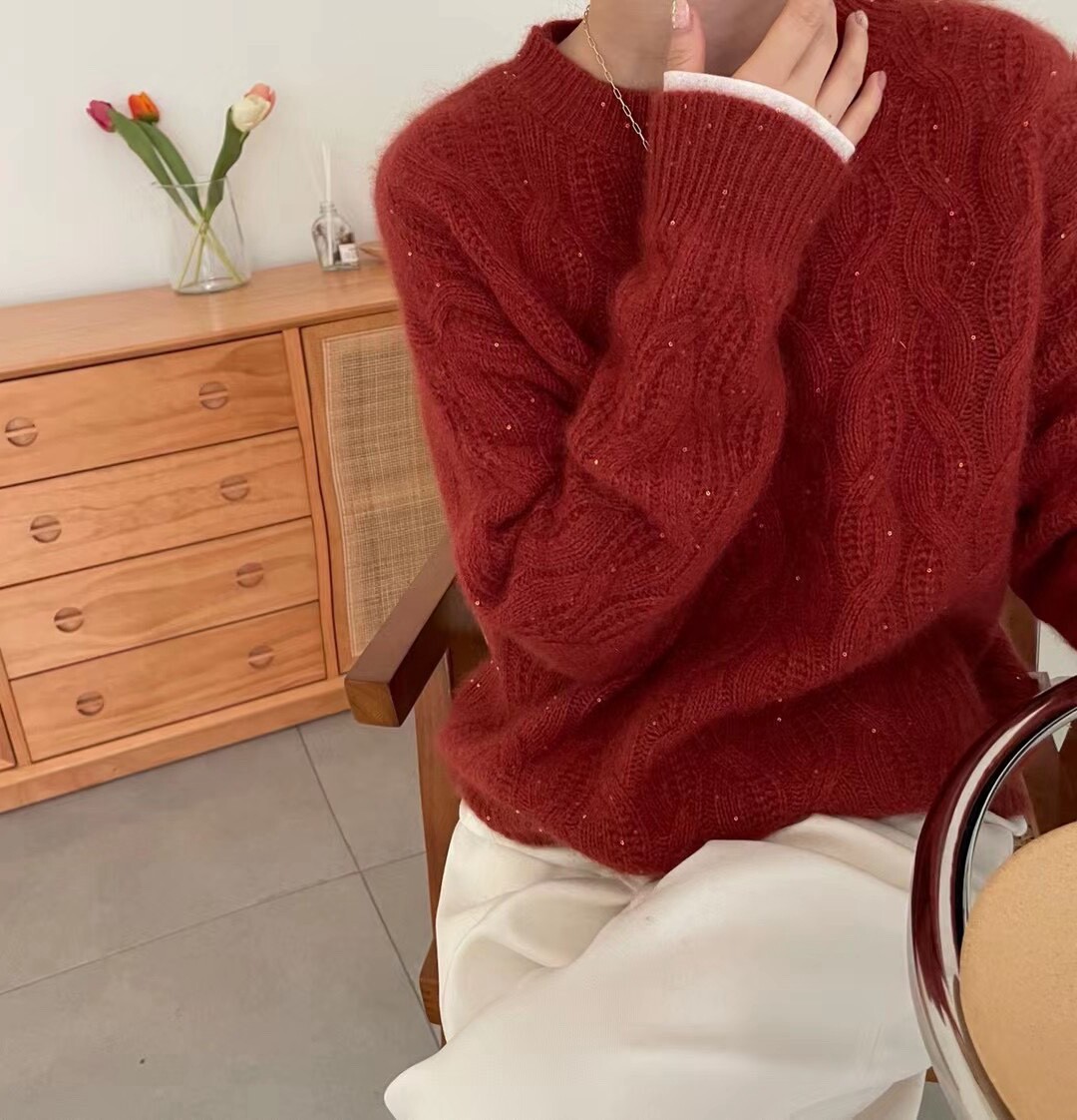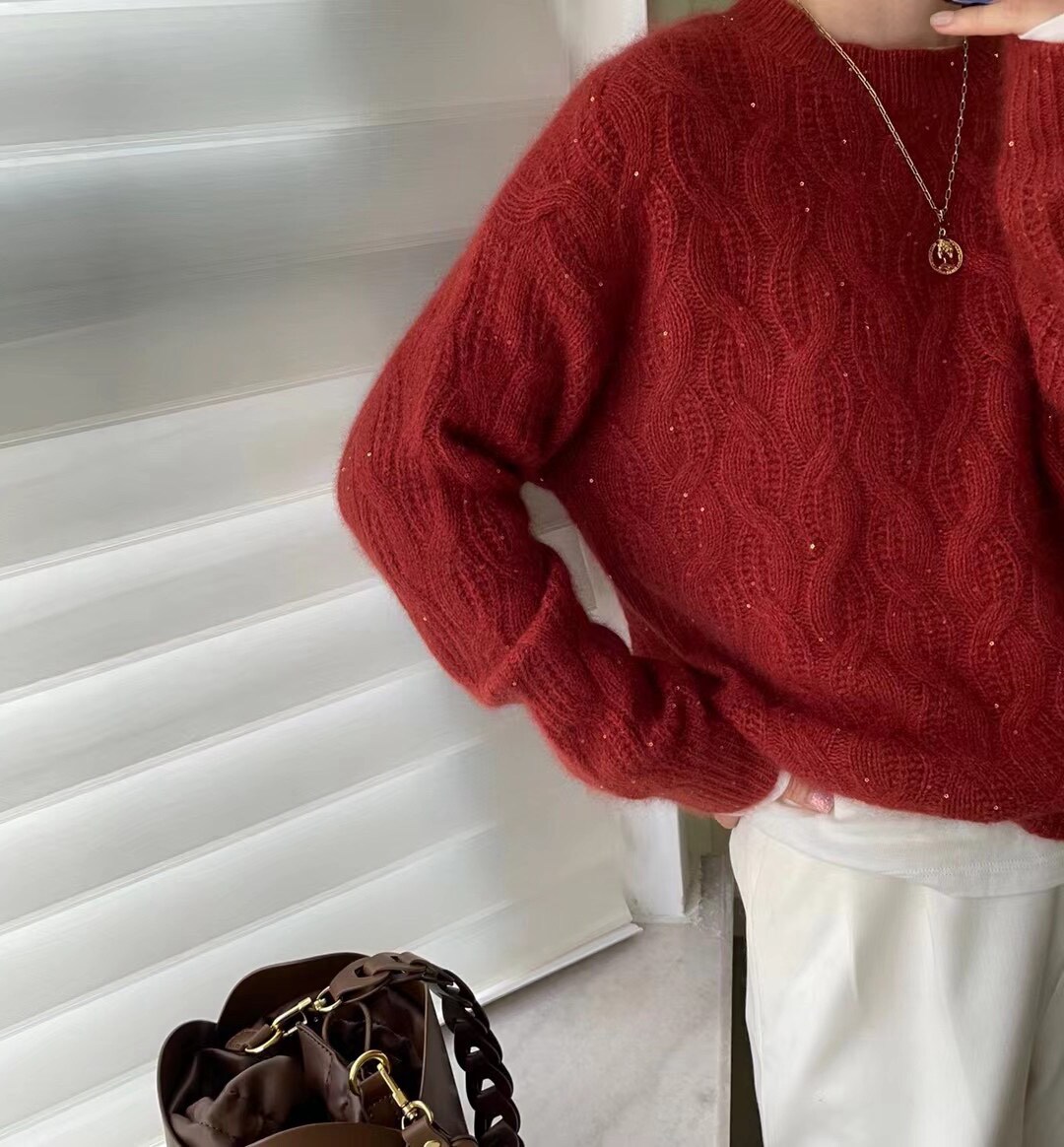 European station heavy industry, European goods, chic, high-end, super beautiful, sequined raccoon fleece, zodiac year, red sweater, women's winter