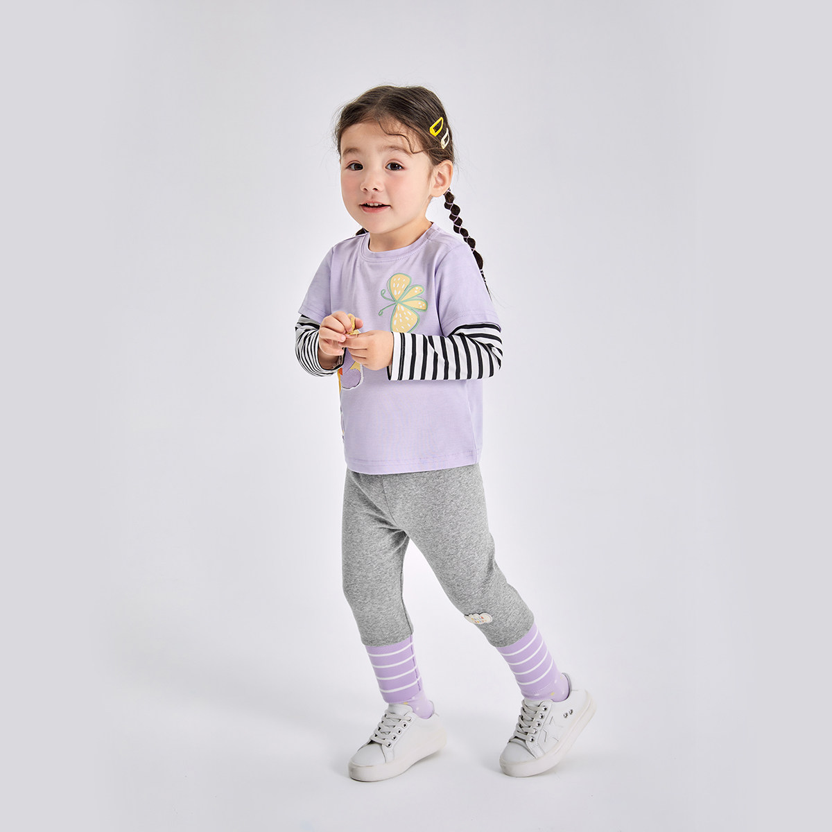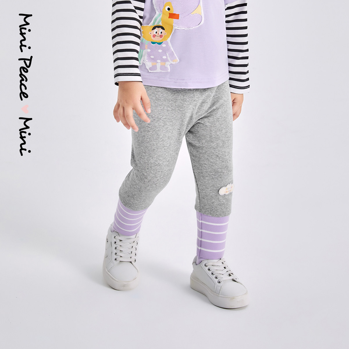 minipeace Taiping bird children clothing children inside lap pants spring new women's treasure grey inner lap pants splicing casual pants