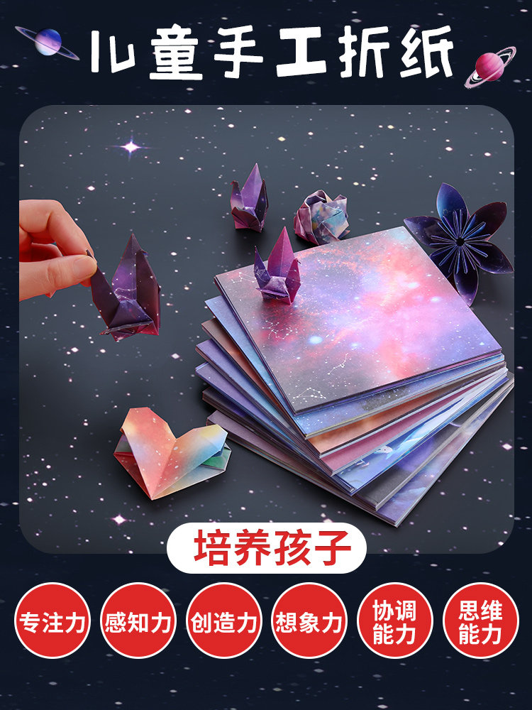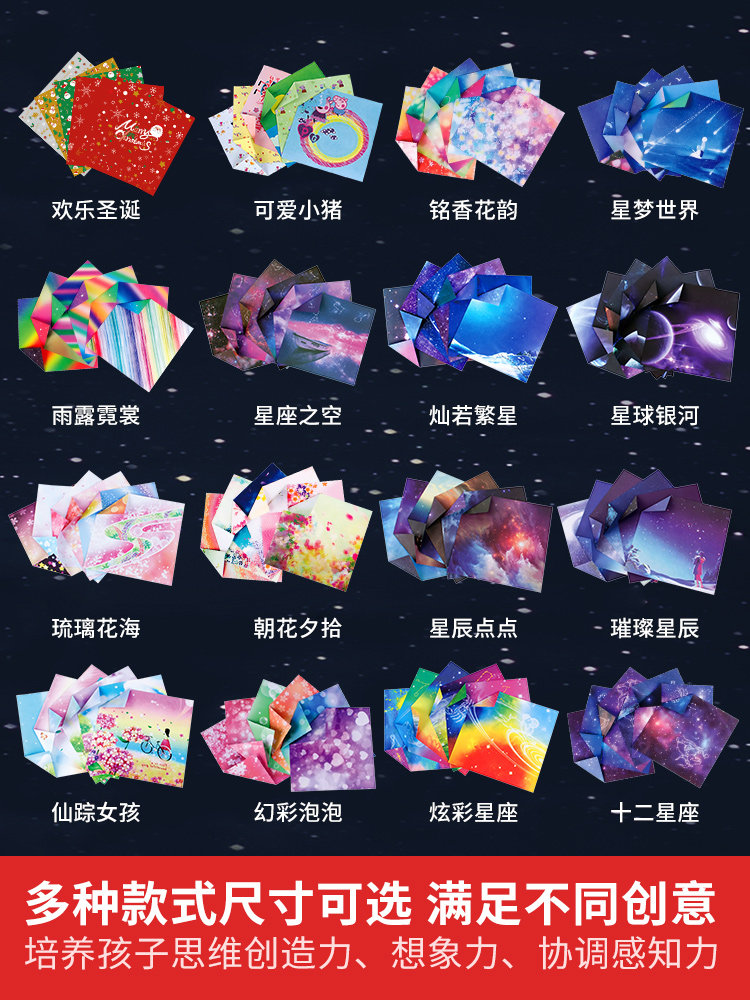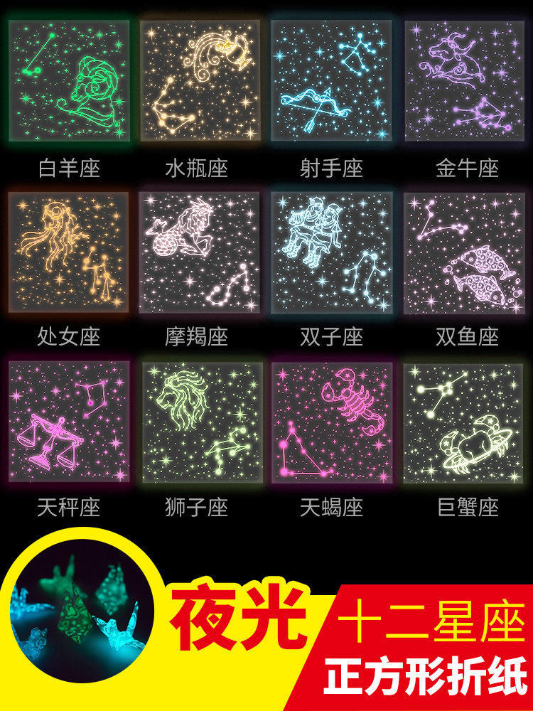 Luminous origami transparent double-sided special paper square large students stack thousands of paper crane flash paper cardboard starry sky 12 constellation luminous paper material origami color handmade kindergarten fluorescent origami