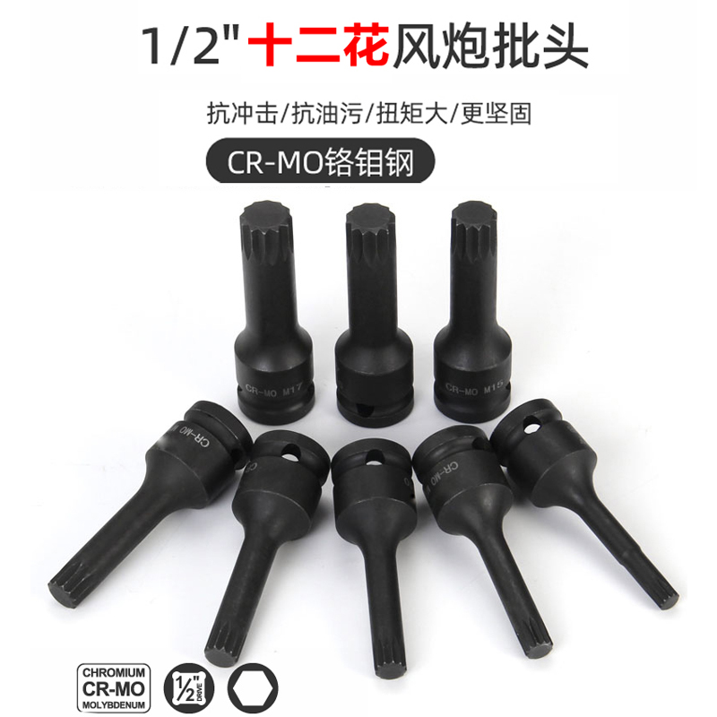 Dafei Chrome Molybdenum steel 12 angle m - type 1 2 wind gun connector batch pneumatic 6 angle rotary sleeve plum batch set