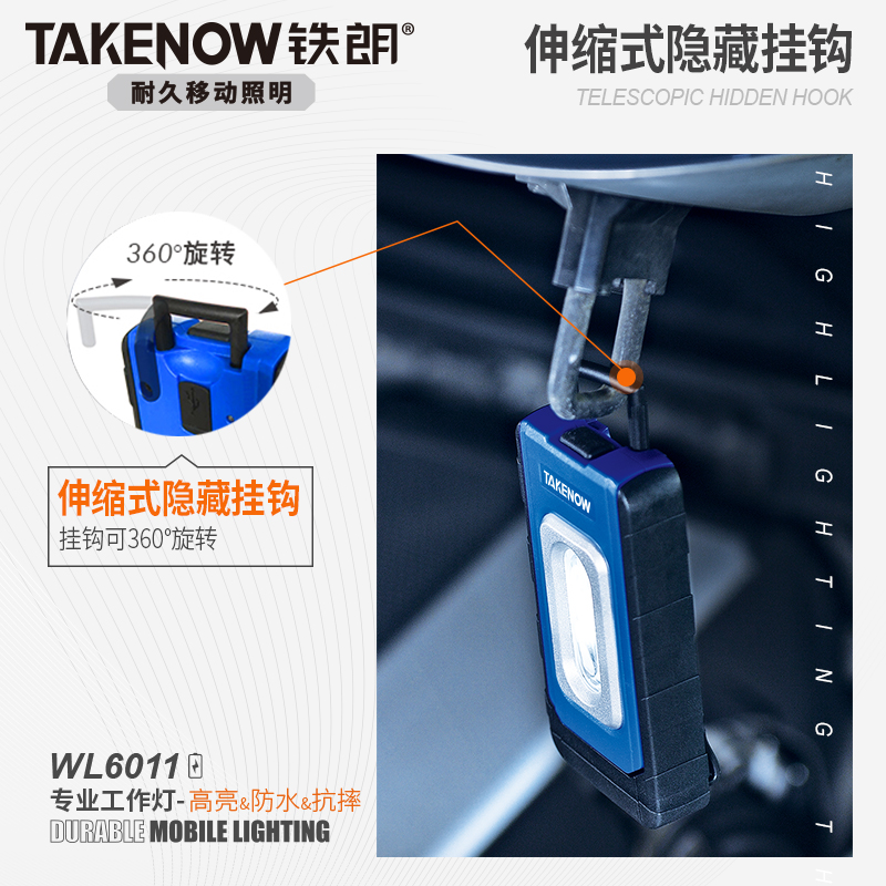 TAKENOW IRON LANG WL6011 RECHARGEABLE LED MAGNET WORK LIGHT CAR HIGH BRIGHTNESS REPAIR LIGHT MACHINE TOOL OVERHAUL LIGHT