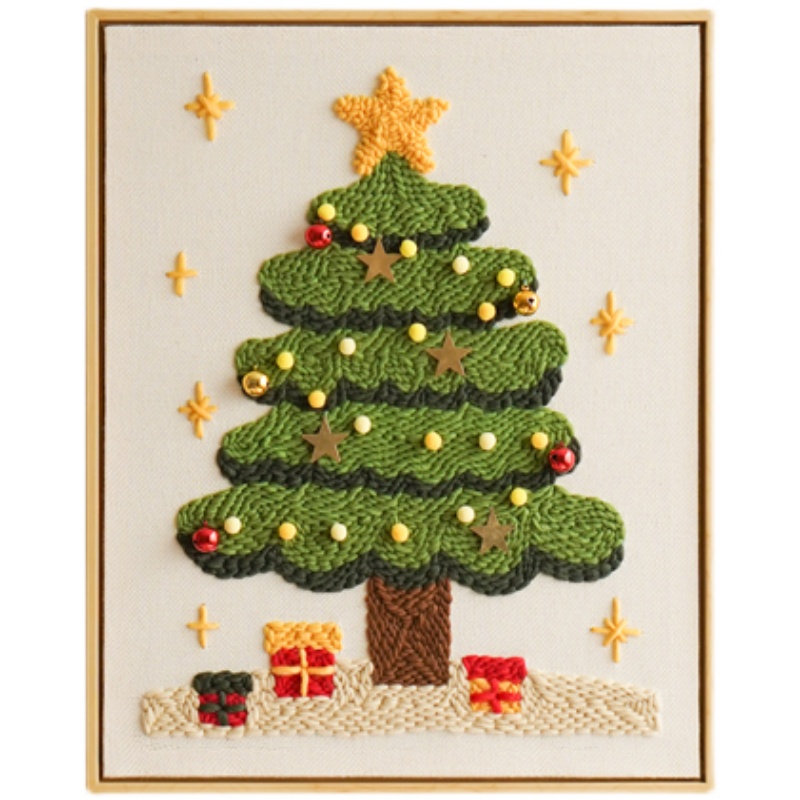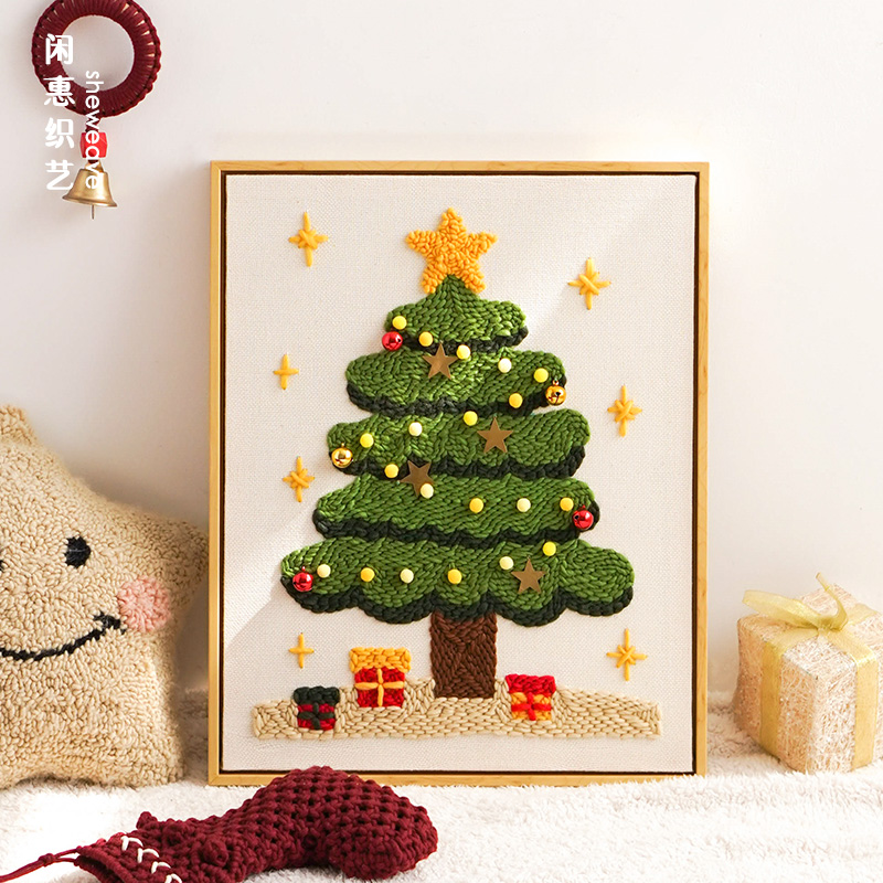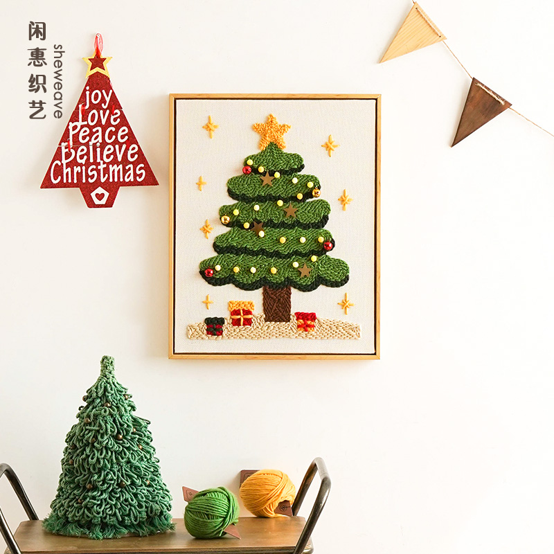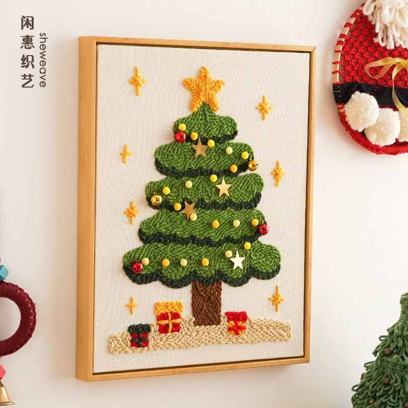 (Christmas) poke embroidered frame (small Christmas tree) poke embroidered material bag