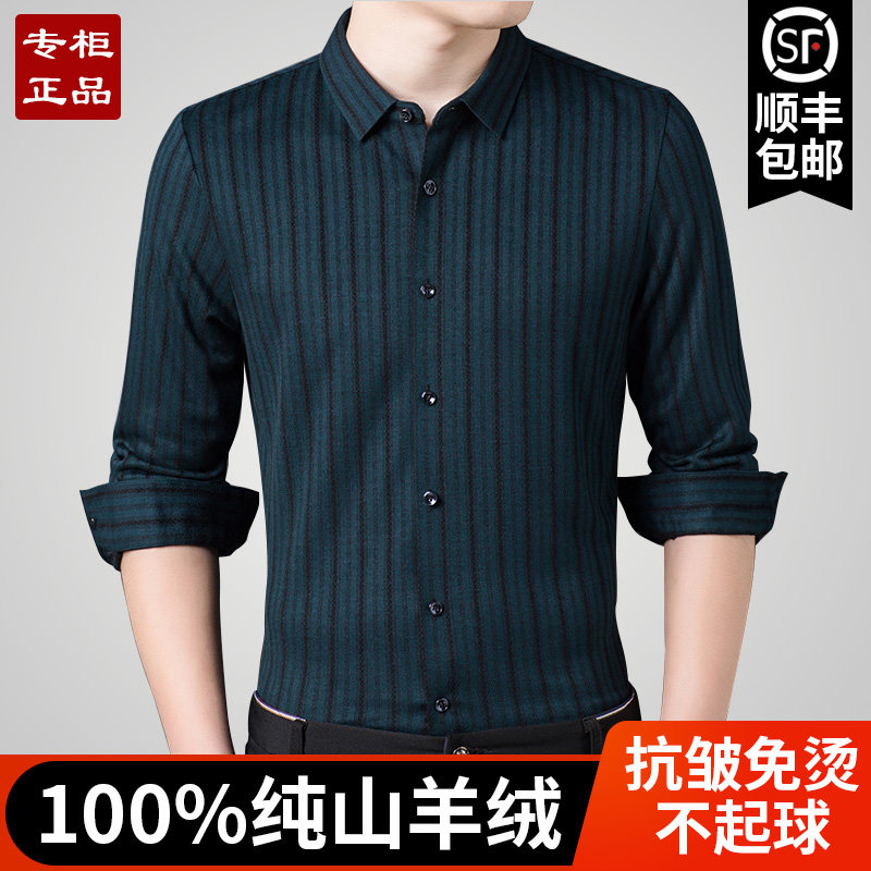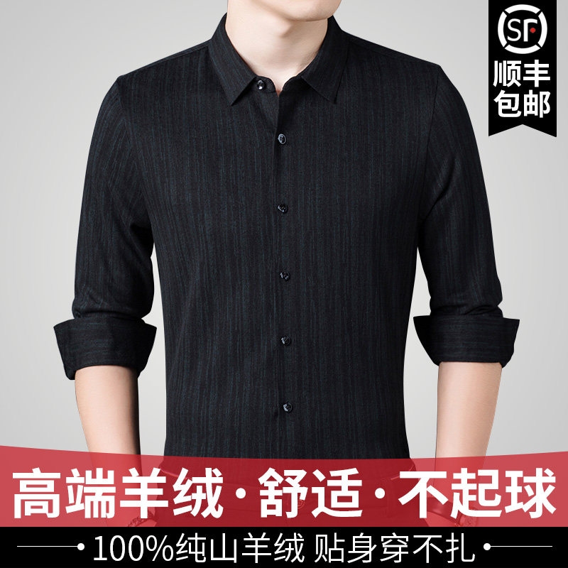 Ordos 100% pure cashmere shirt thickened long-sleeved autumn and winter middle-aged men's loose casual wool shirt