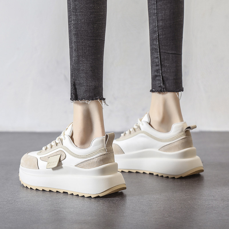 Nicole veve leather white daddy shoes women's trendy ins Hong Kong style sneakers 2022 new women's shoes spring thick
