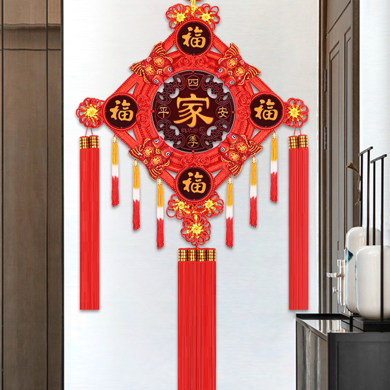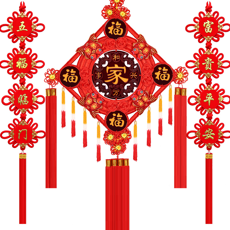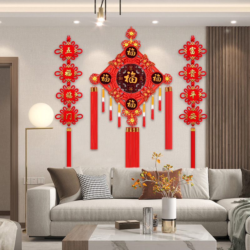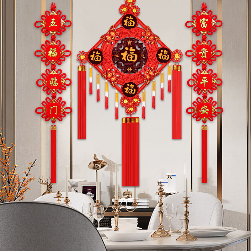 Five Fu China Knot Decoration Living Room Large Number Fu Character Peach Wood Xuanguan TV Wall High-end Recruiting Town Residence Hall Residence Jo Relocation Hanging Decoration