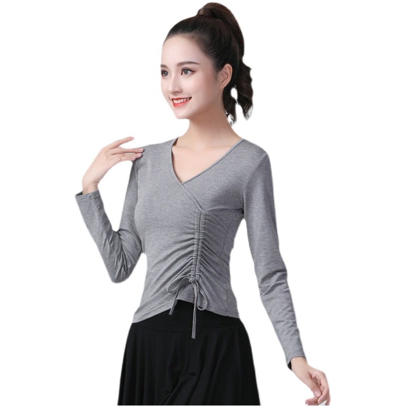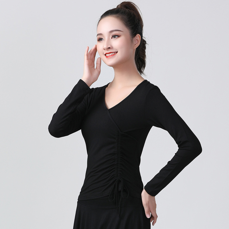 New Latin dance V collar Long sleeves ladies' blouses Modale loose dancing to the Moden dance social dancer