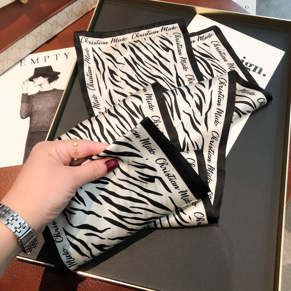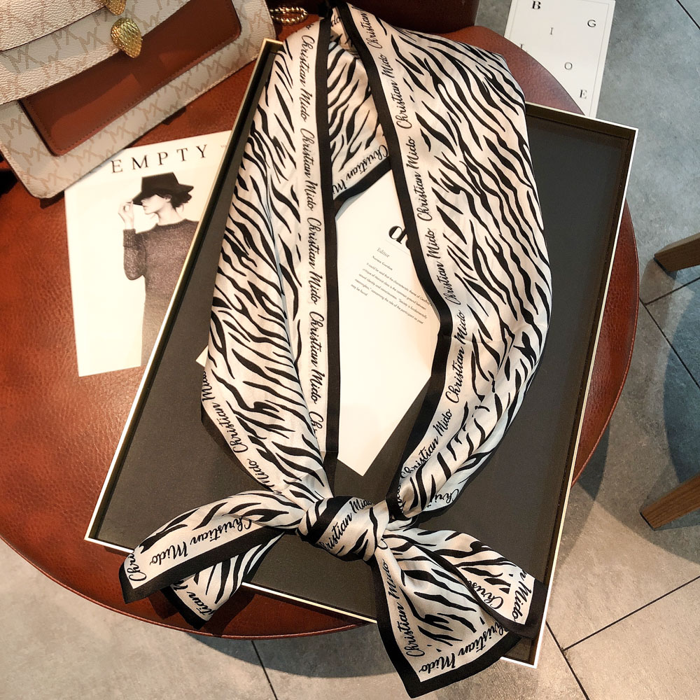 Hangzhou Silk 100 % Sand Silk Scarf Nordic Zebra Line Silk Scarf Female Nestle Strap