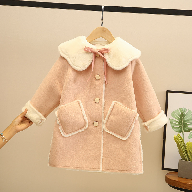 Children's clothing 2021 Girls winter clothing thickened lamb fur coats Children's foreign velvet gush with long version of mink coat