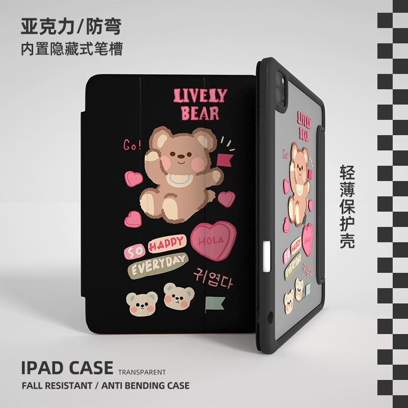ipadpro11 protective sleeve air4 with pen slot mini6 cute 2021 acrylic 10 2 shell 9 transparent anti-bend 2020 ninth generation triple fold 5 charging 10 9 suitable