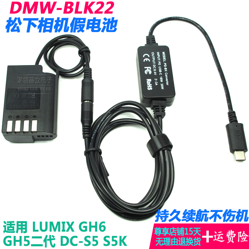 Panasonic GH6 S5 fake battery BLK22 is suitable for GH5 second generation S5K camera external power supply TYPEC charging treasure PD