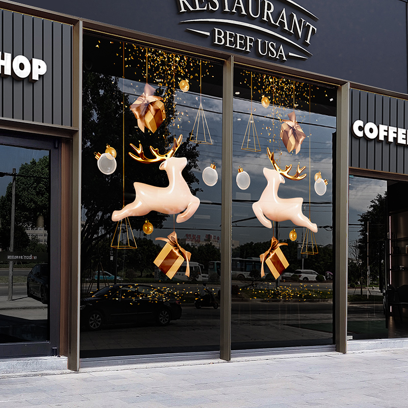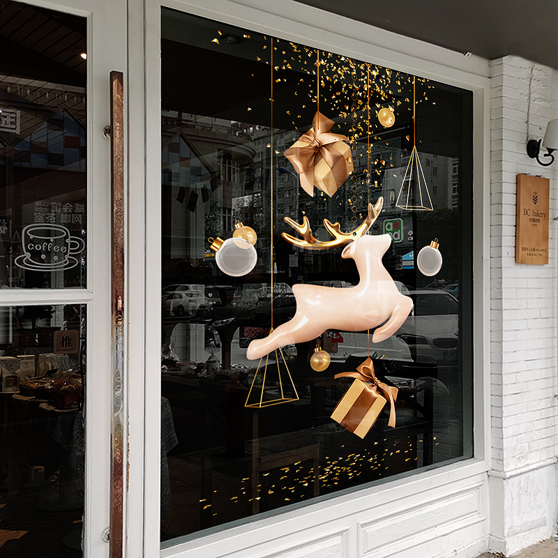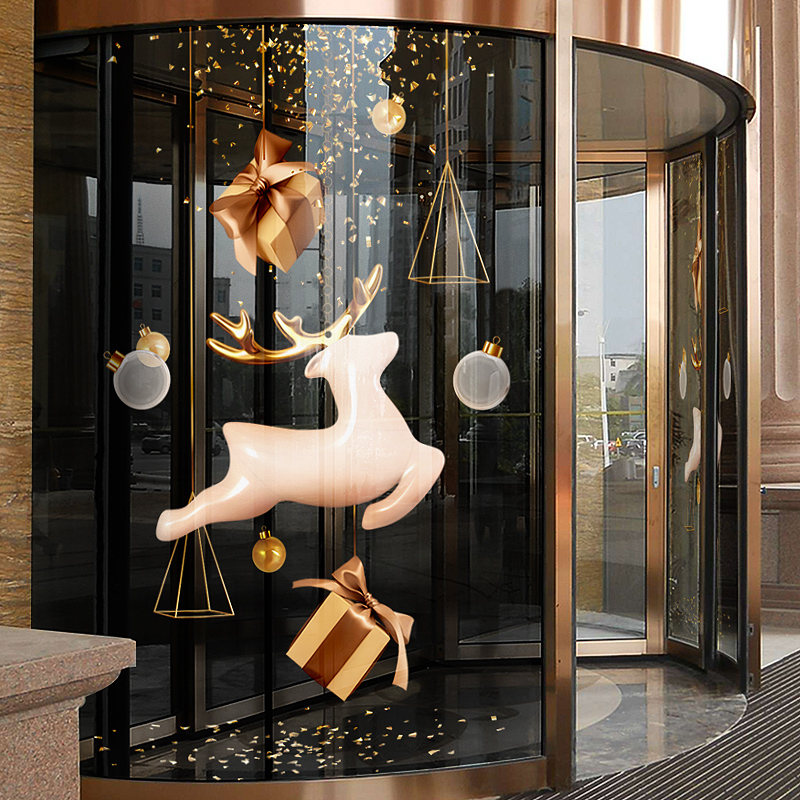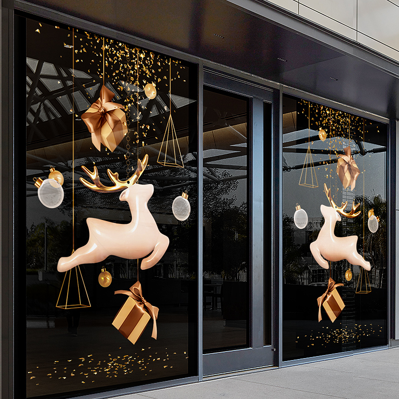 Christmas decorations glass door stickers Cute Elk Wall Stickers Painting Mall Shop Shop Window Personality Electrostatic Window Applic