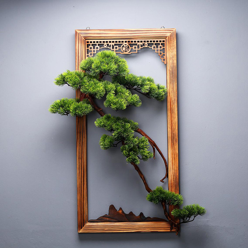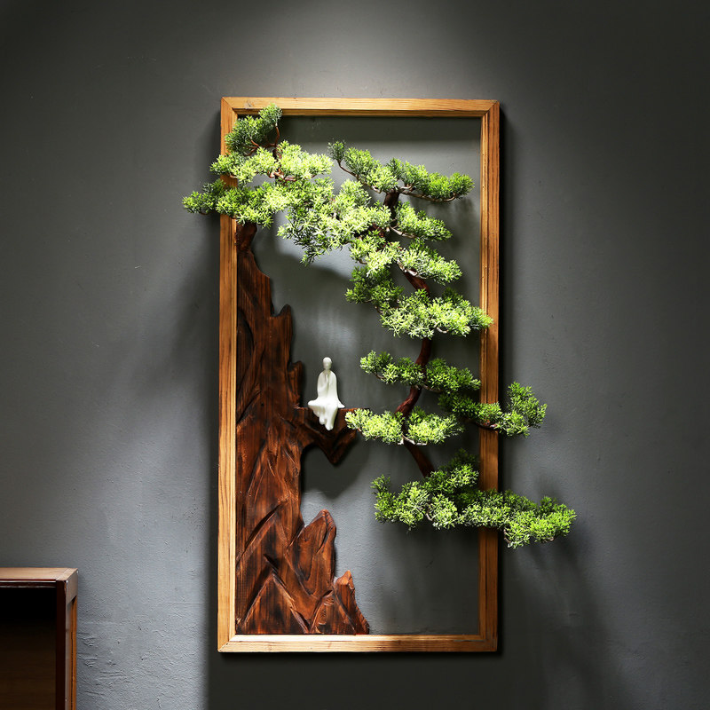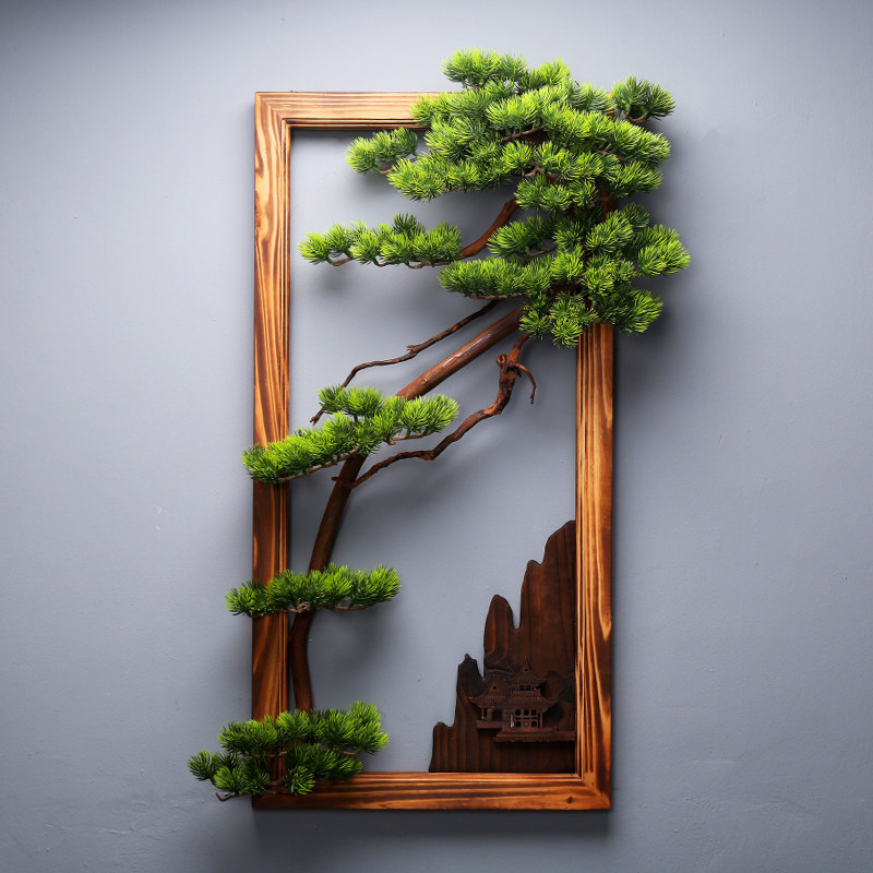 Chinese solid wood wall-mounted living-room Xuanguan sofa Background wall Decorative Tea Room Wall Decoration Emulation Greet Visitors Pine Pendant-Taobao