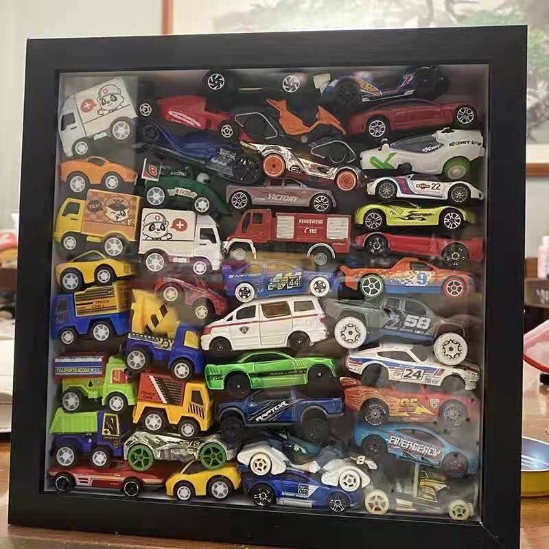 Small Car Containing Photo Frame Wind Fire Wheel Car Toy Small Car Soup Maz Small Train Display Case Dust Resistant
