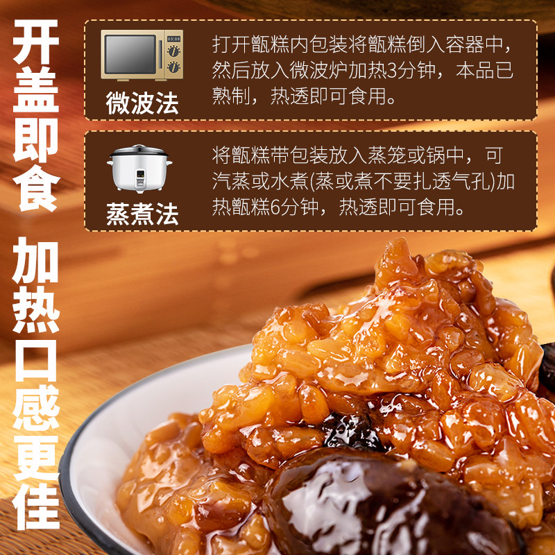Glutinous rice, red dates, candied dates, kidney beans, white sugar, rock sugar, brown sugar, honey, drinking water