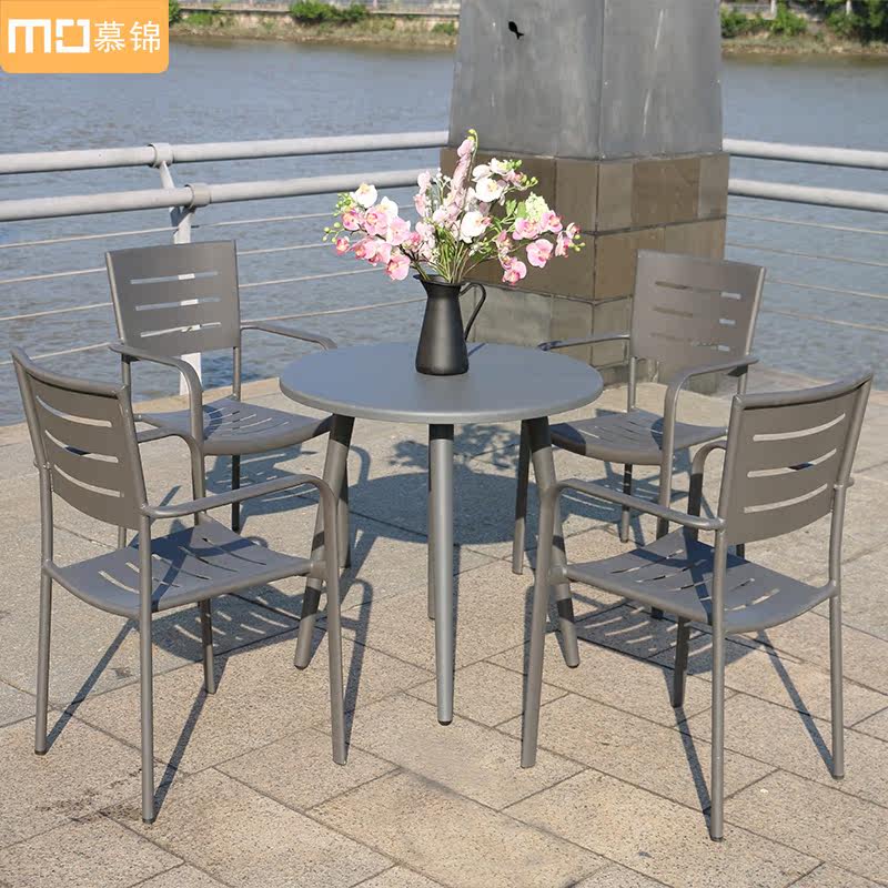 Outdoor table and chair courtyard villa balcony open air stainless steel tables and chairs leisure waterproof aluminum alloy table and chair combination