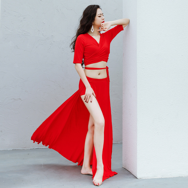 Belly dance practice The Oriental Ensemble to serve Modale soft flutter with waist double open and closed fork long dress performance out of service