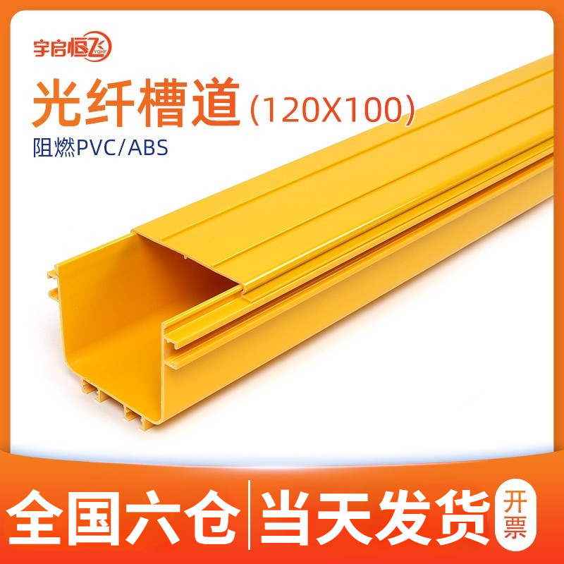 YQHF Yuqi Hengfei optical fiber channel pigtail channel communication data high-speed rail base station computer room integrated wiring ABS PVC yellow flame-retardant plastic bridge cable channel connector outlet 120*100