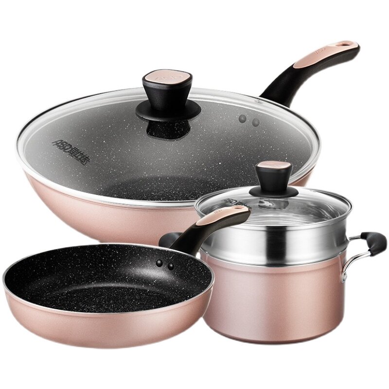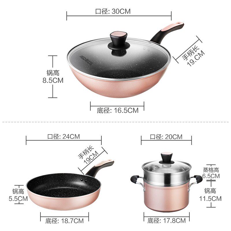 Ai Shida spar three-piece set pot frying pan frying pan soup pot household non-stick pot cooking pot induction cooker general purpose