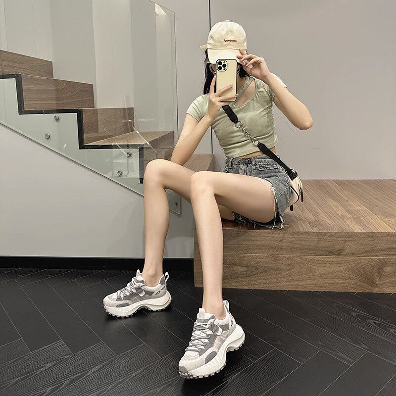 (USA) Goofy Sport genuine leather Old daddy shoes women's spring summer net face breathable thick bottom casual sneakers-Taobao
