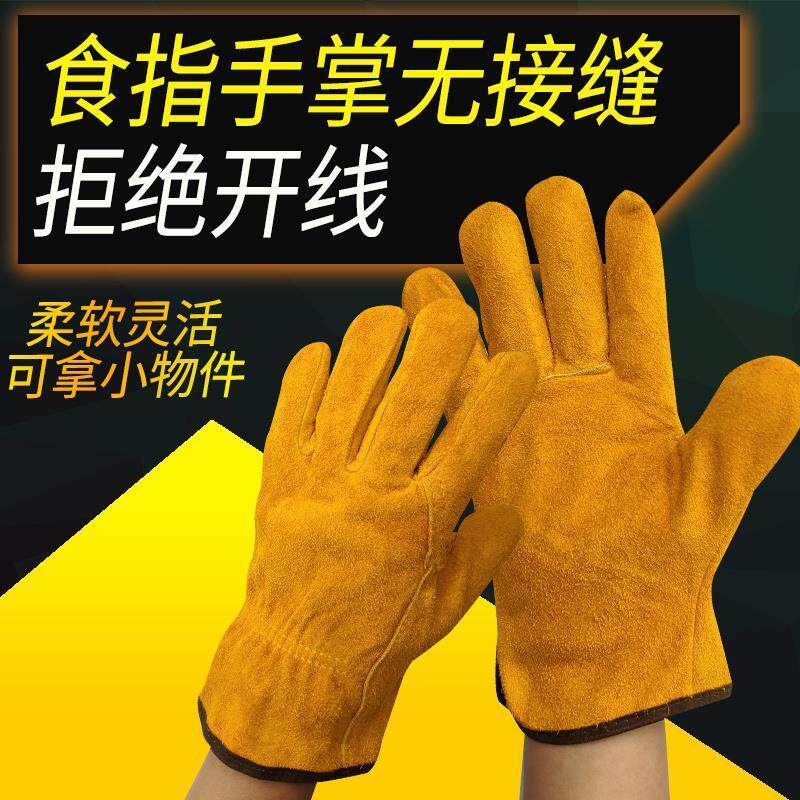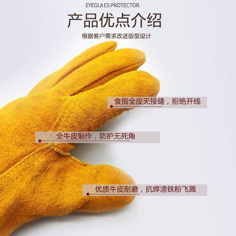 Electric welding gloves Cow Leather High Temperature Resistant Short Leather Leather Electric Welders Special Welders Anti-Burn And Abrasion Resistant Soft Bull Peel Welt Welt