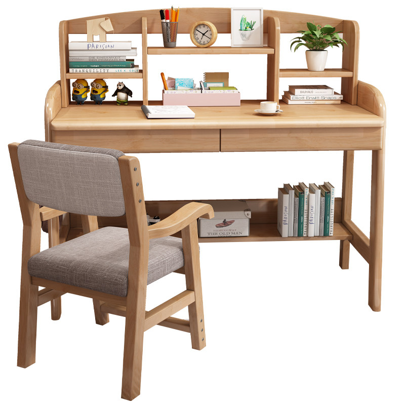 Lying school study table student writing desk and chair set home simple bedroom desk can lift solid wood children's desk