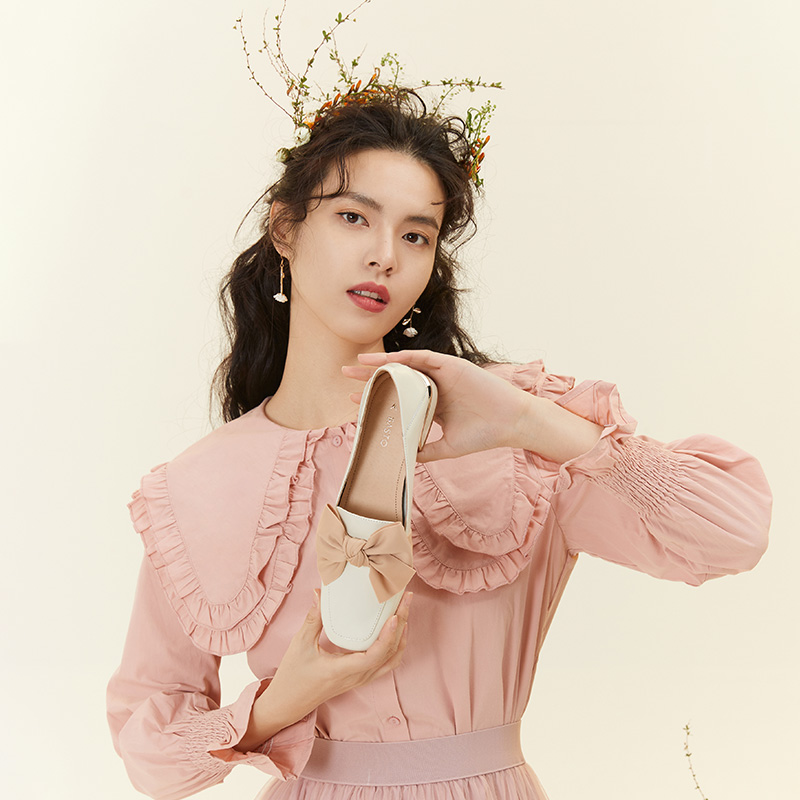 Thyme 2022 Spring new mall Same-section Commuter Butterfly Knot Lefu Shoes Woman Shallow single shoe KA383AA2