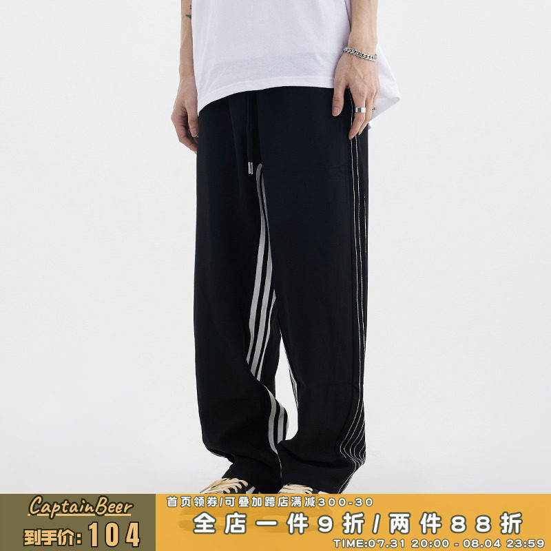 CTB Beer Captain American Side Stripes Splicing Casual Pants Male Pituality Loose Pants High Street Tide Ins summer