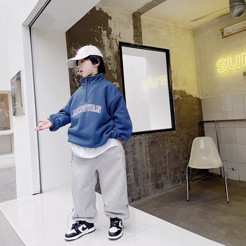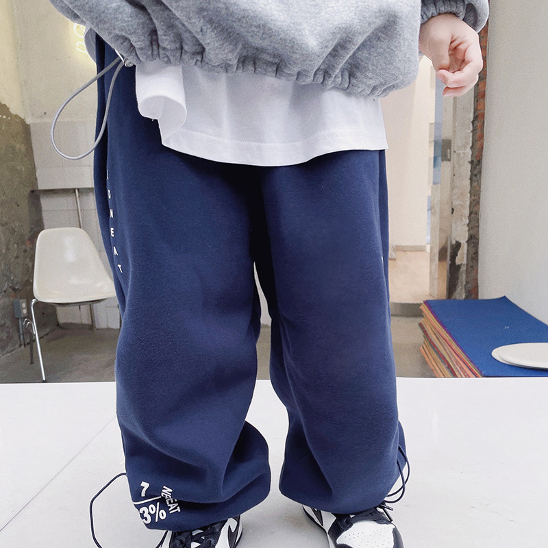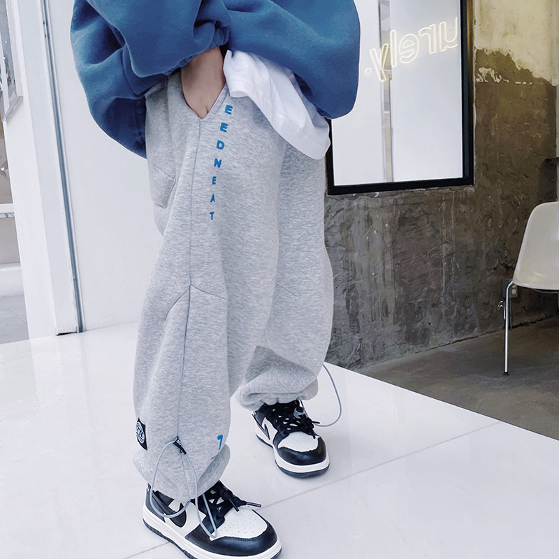 2021 Winter Dress New Boy Thickened Sports Pants Han Edition Casual Children Wide-legged Pants Plus Suede Trunks Alphabet Long Pants