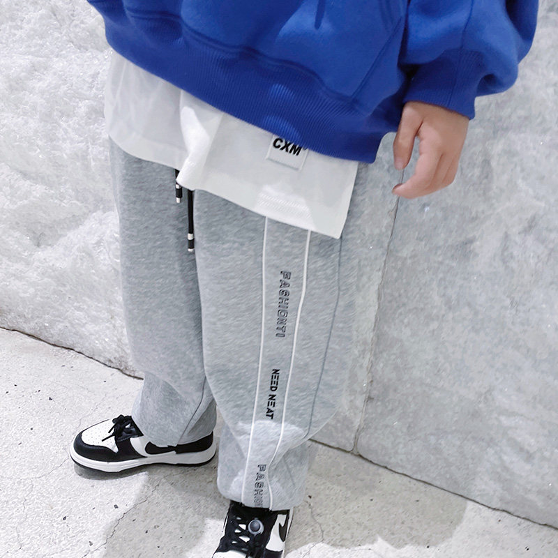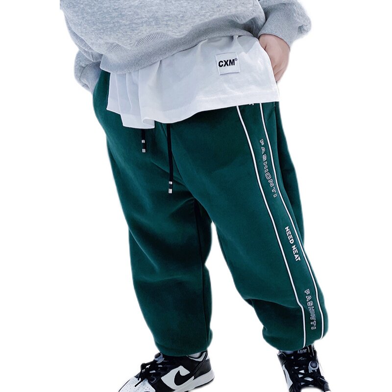 2022 winter new children's casual pants Korean style trendy fleece casual pants boys super warm high street sports pants