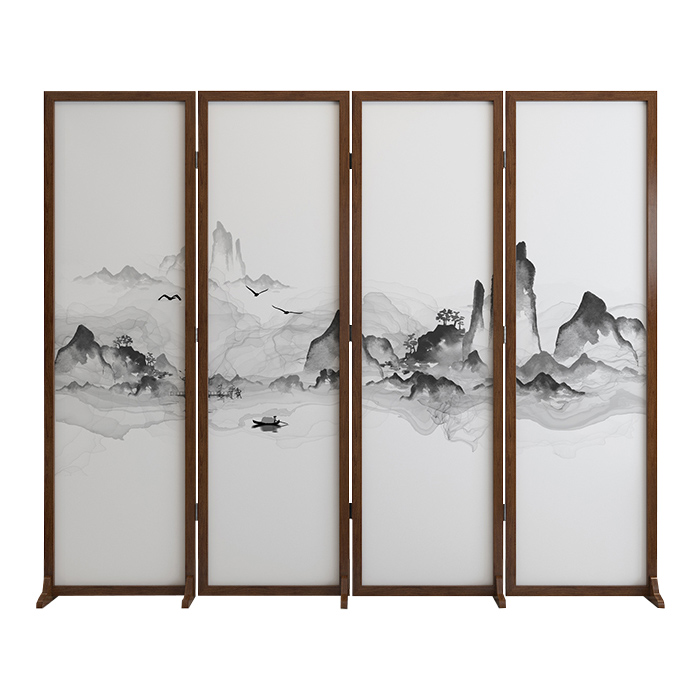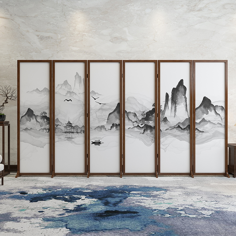 New Chinese Solid Wood Screen Partition Living Room Bedroom Shelter Office Hotel with Landscape Ancient Wind Mobile Folding Fold