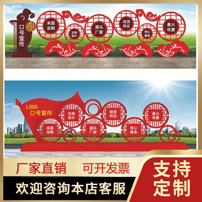 Customized socialist core values outdoor stainless steel publicity bar party building sculpture signage landscape sketch