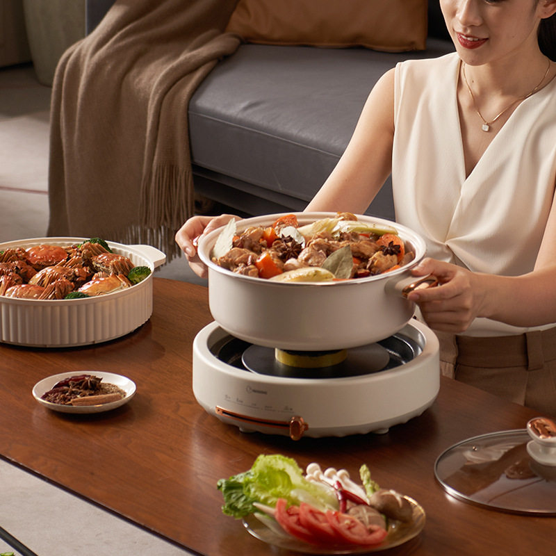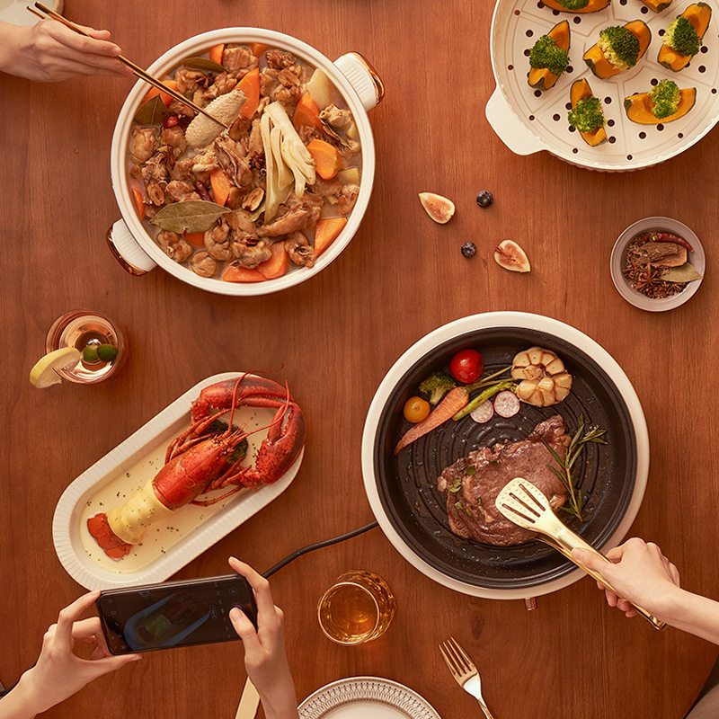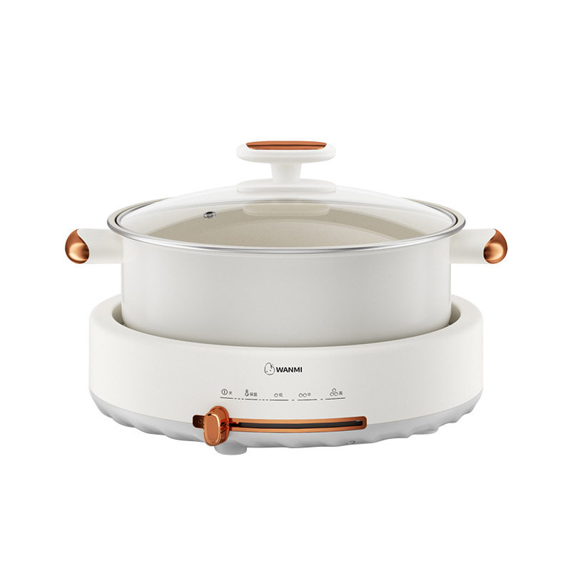 Electric hot pot with steam cage grille split 5L multi - functional cooking pot anti - dry - fed white ceramic glazed heat cooker