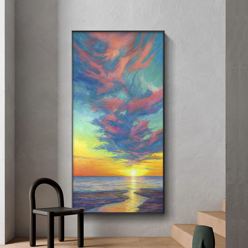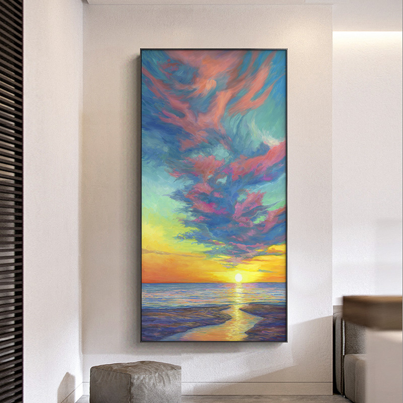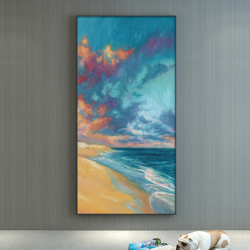 Pure hand-painted oil painting Nordic modern living room floor-to-ceiling abstract decorative painting sea scenery corridor large porch hanging painting