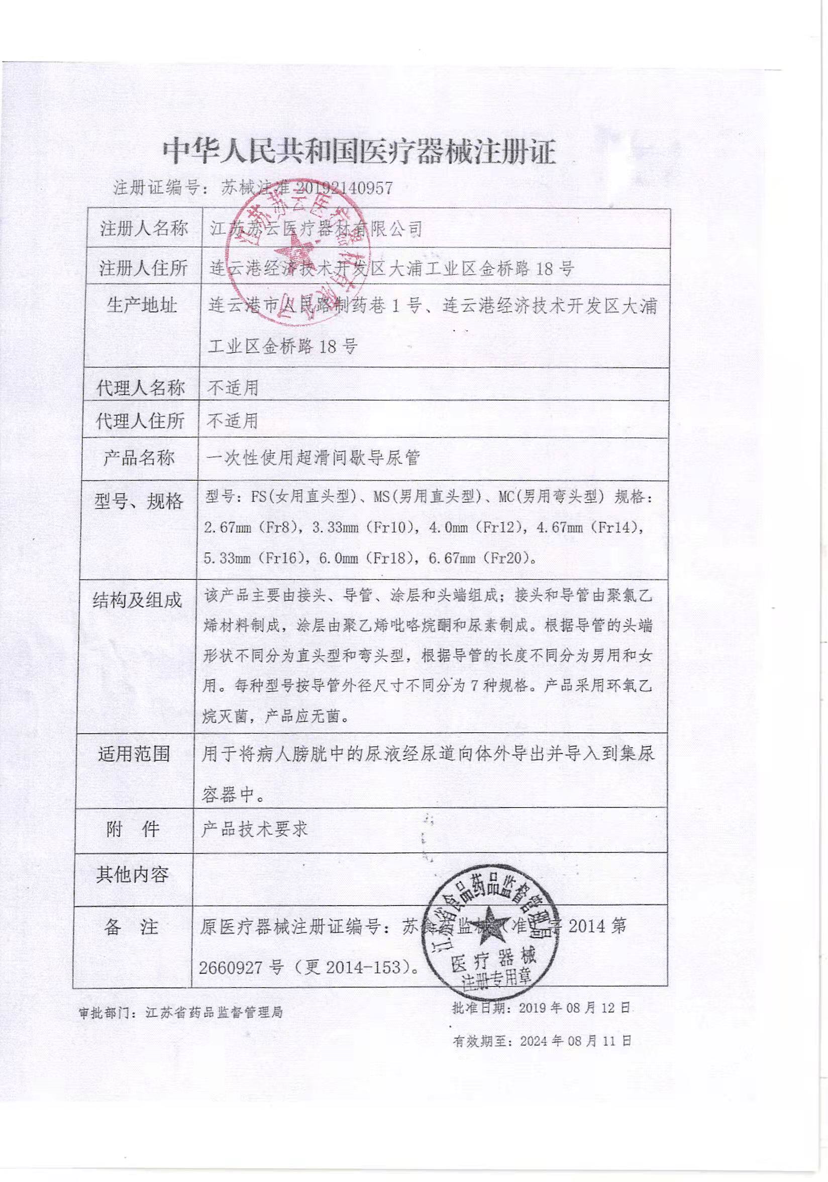 Disposable urinary catheter for Su Yun