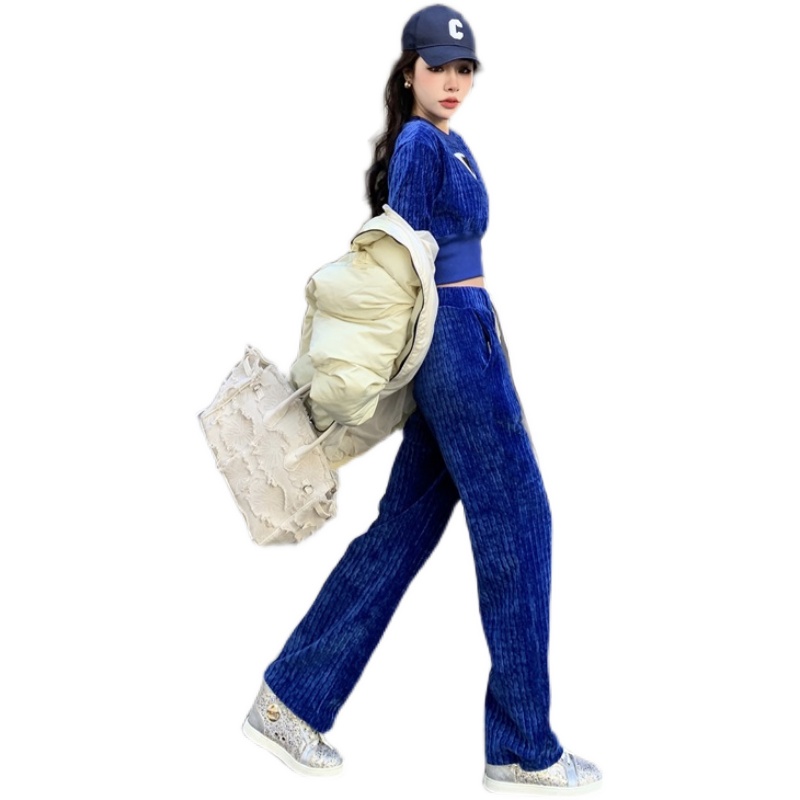 2021 Autumn Winter New Internet Red Fashion Casual Light Core Suede Clothing Broadlegged Pants Two-piece Suit Women Thickened Sportswear