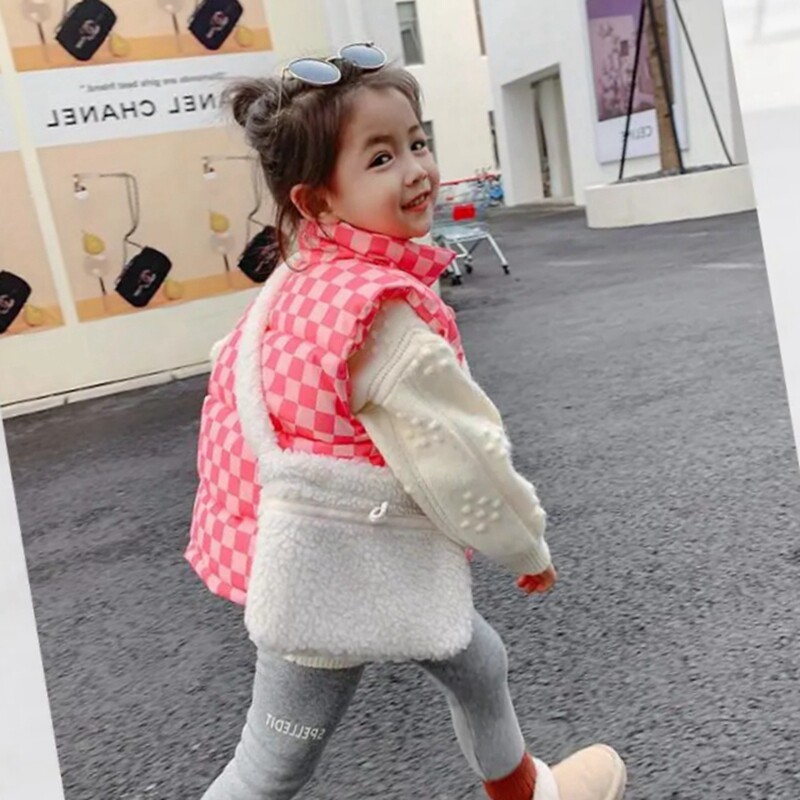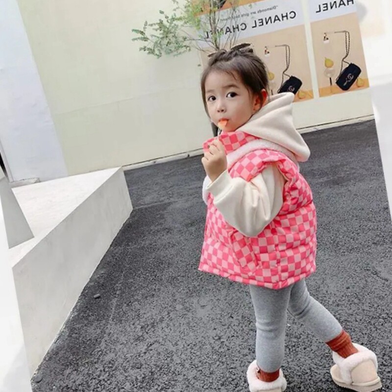 Girl's autumn and winter waistcoat 2021 new Korean version small and medium boy grid baby 100 hitch a trendy foreign warm vest wave