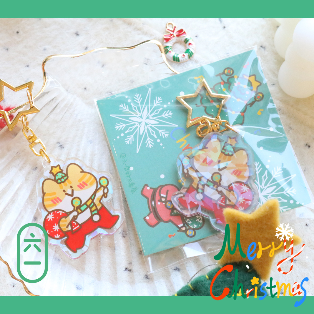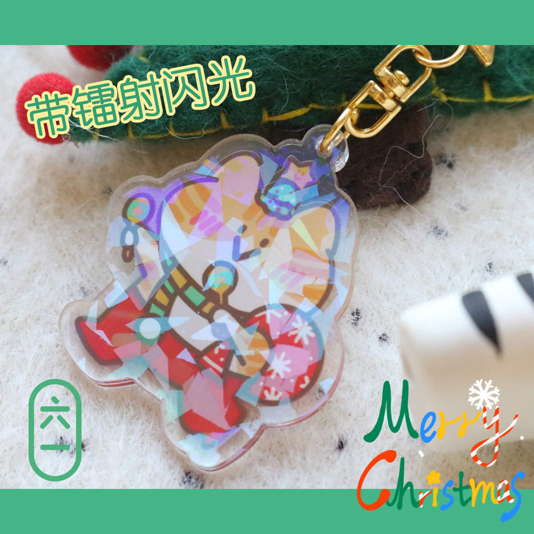 Liuyi original Christmas cat laser sparkling keychain acrylic pendant creative gift