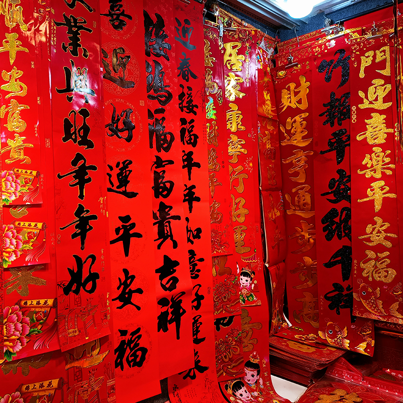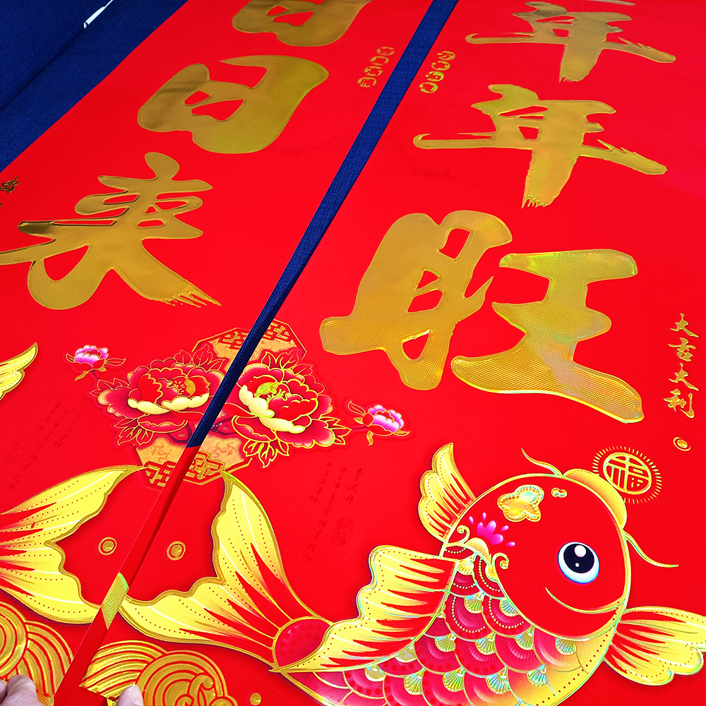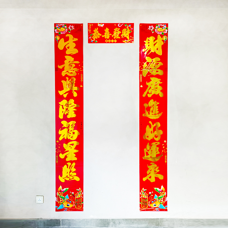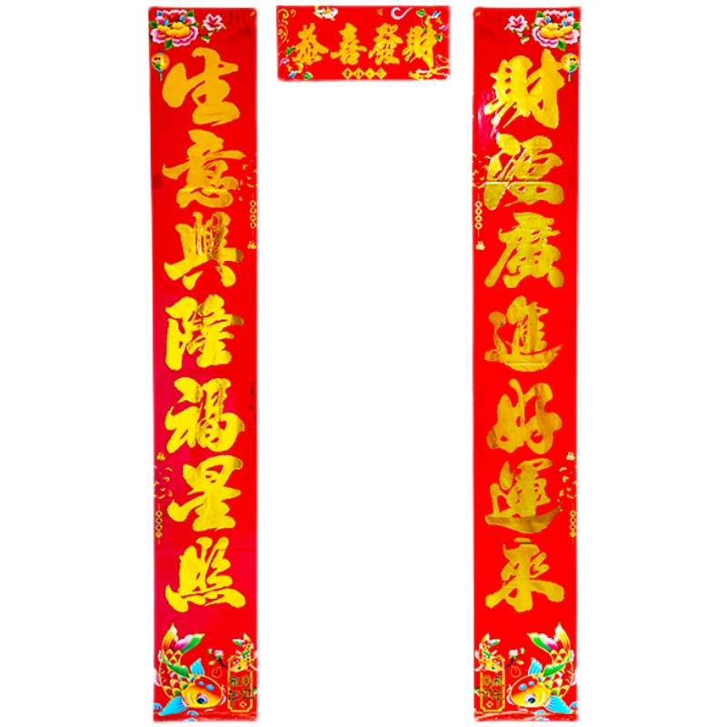 Large bronzing Spring Festival couplets flocking paper models opening business couplets Spring Festival New Year decorations rich resources to send glue