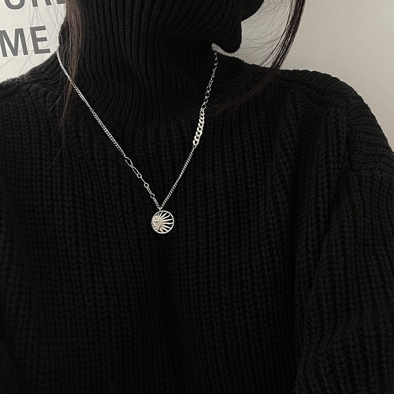 Retro Roman necklace with body 925 pure silver individuality sweater with delicate asymmetrical collarbone chain