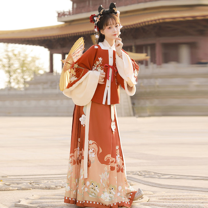 Beige coat + white top + orange horse face skirt red coat + apricot top + orange horse face skirt red coat + apricot top + bean green horse face skirt beige three-piece set + bib red top red skirt three-piece set + bib red top green skirt three-piece set + bib beige beige three-piece set + bib + bag red top + red skirt three-piece set + bib + bag red top + red skirt three-piece set + bib + bag red top + green skirt three-piece set + bib + bag neck + bag bag